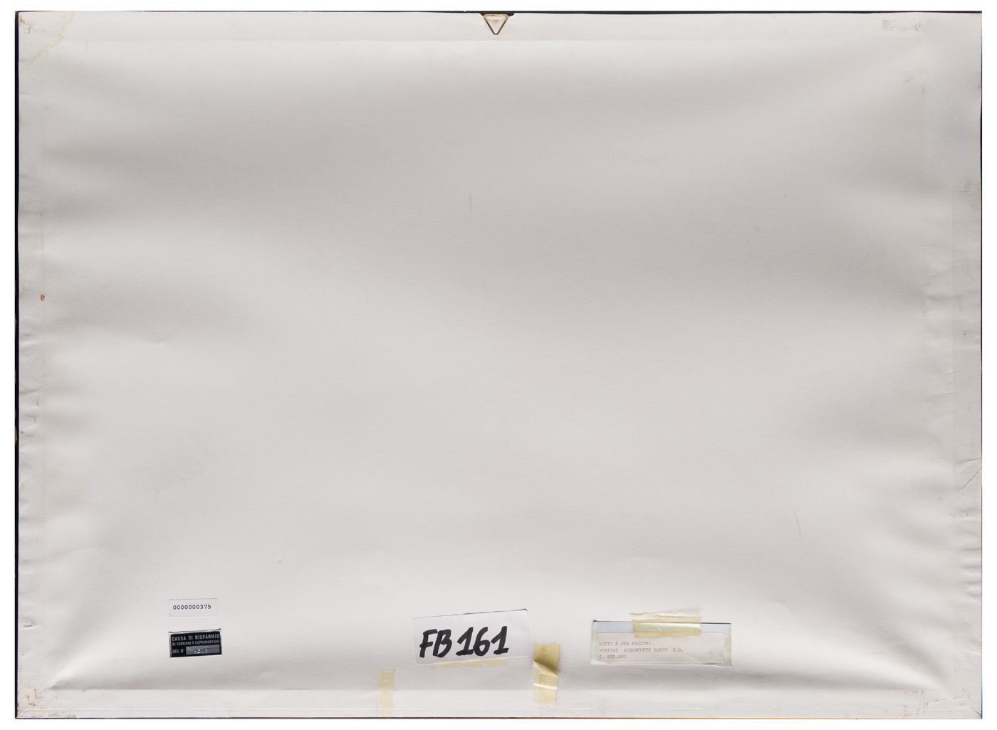Elementi distintivi: sul verso, etichetta Cassa di Risparmio di Fabriano e Cupramontana con riferimenti di inventario; etichetta anonima con dati dell'opera