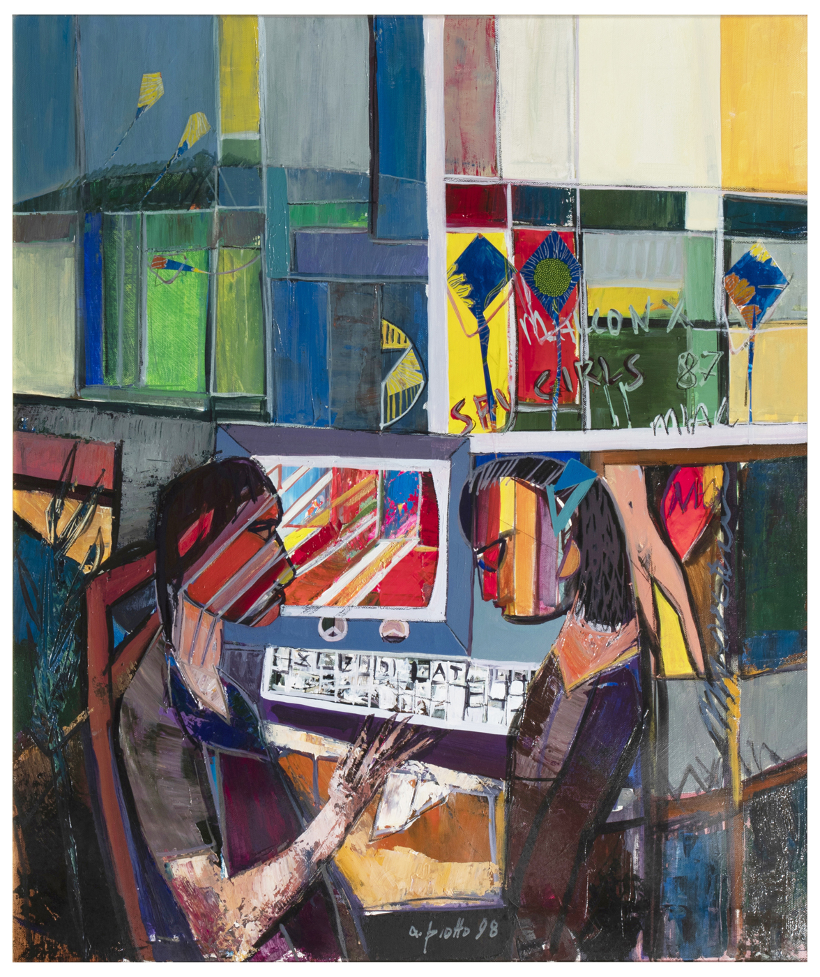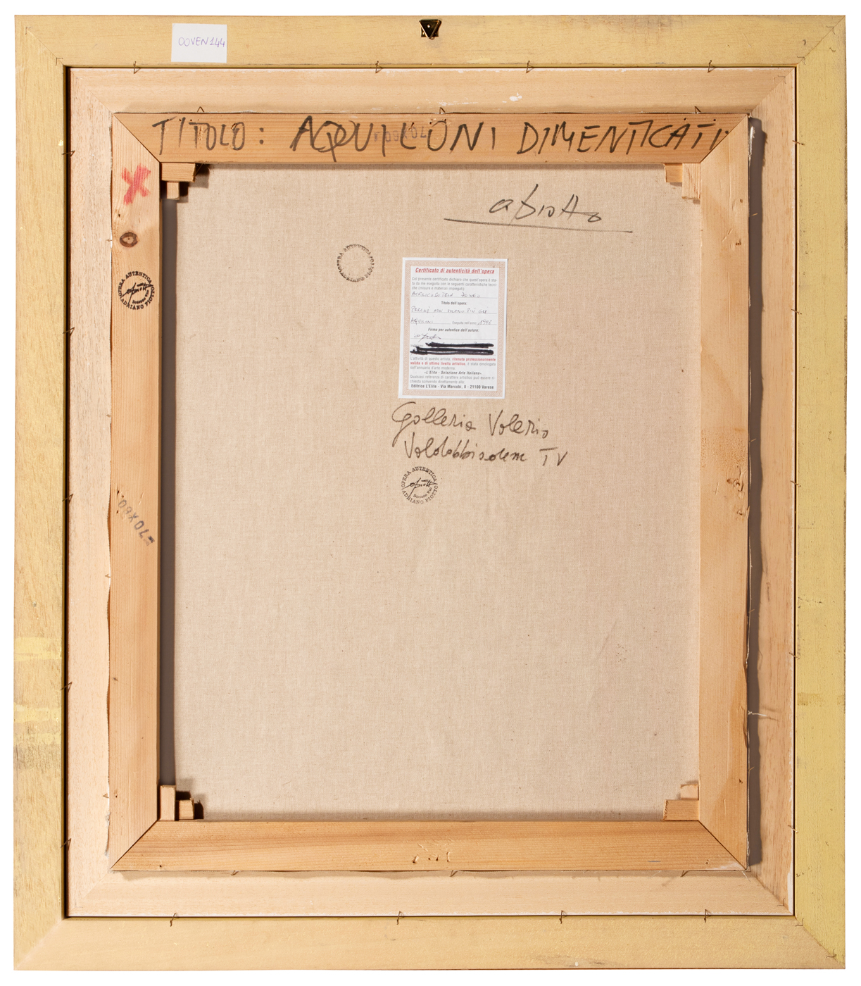 Altre iscrizioni: “Titolo: Aquiloni dimenticati” sul telaio; “Galleria Valerio Valdobbiadene TV” sul verso