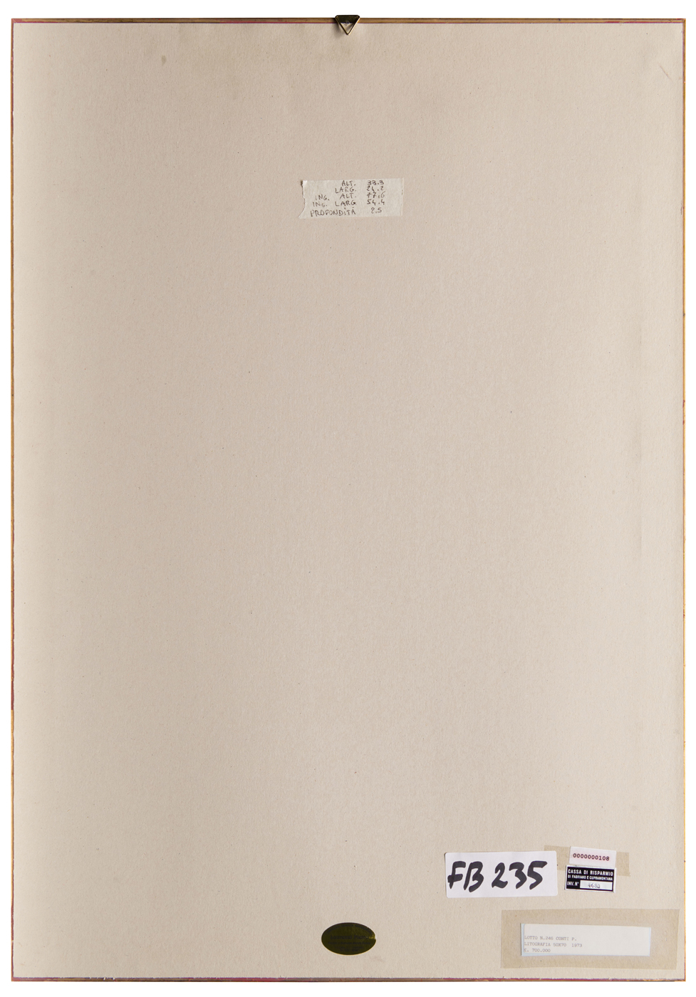 Elementi distintivi: sul verso, etichetta anonima con dati dell'opera; etichetta Cassa di Risparmio di Fabriano e Cupramontana con riferimenti di inventario