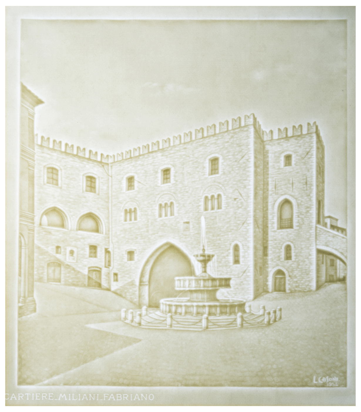 Luigi Casoni (1926 - 2016) , per Cartiere Miliani, Fabriano La Fontana Sturinalto di Fabiano, 1954