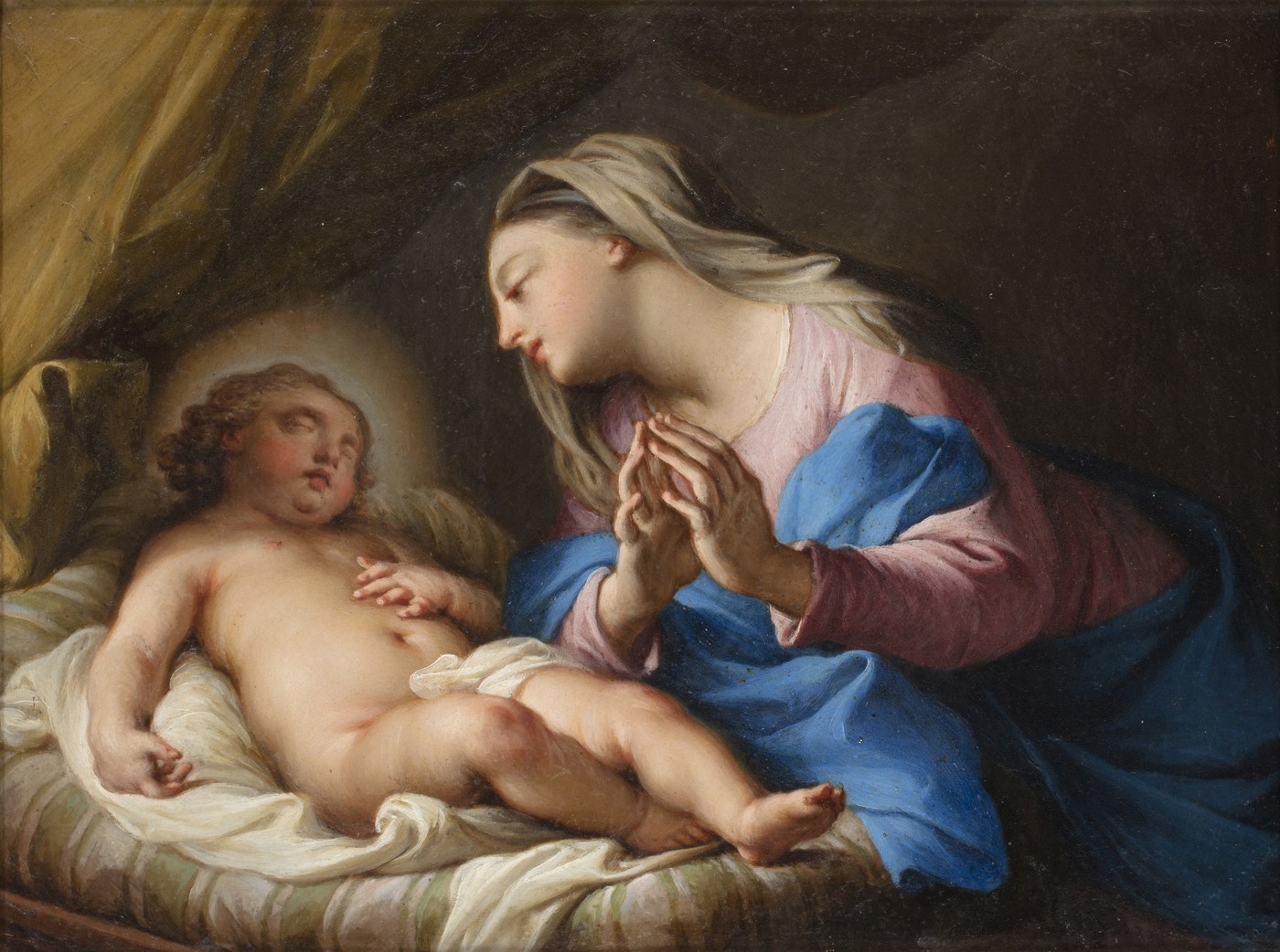 Grande è stata la fortuna della celebre e “perfetta” iconografia di questa Madonna che adora il Bambino, conosciuta anche come “Madonna del sonno”.
