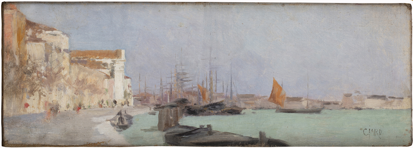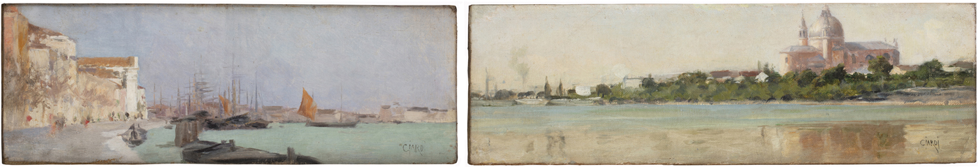 Bibliografia: "Bell’Italia, La pittura di paesaggio dai Macchiaioli ai neovedutisti veneti", a cura di S. Cecchetto e L. Turchi, catalogo della mostra, Venezia, 2015, p. 66, nn. 6-7