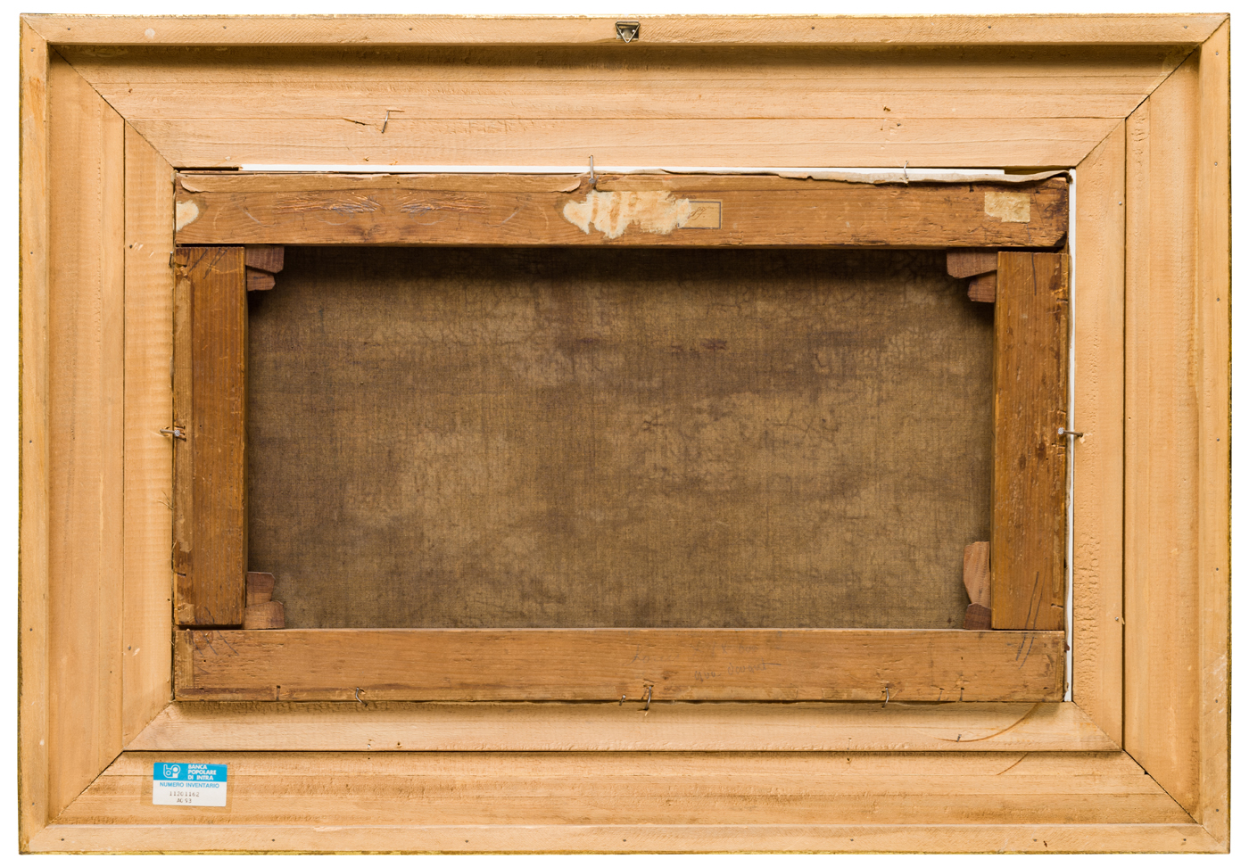 Elementi distintivi: sul telaio etichette con numeri "87" e "23" e iscrizioni illeggibili. Sul retro della cornice etichetta Banca Popolare di Intra con riferimenti di inventario