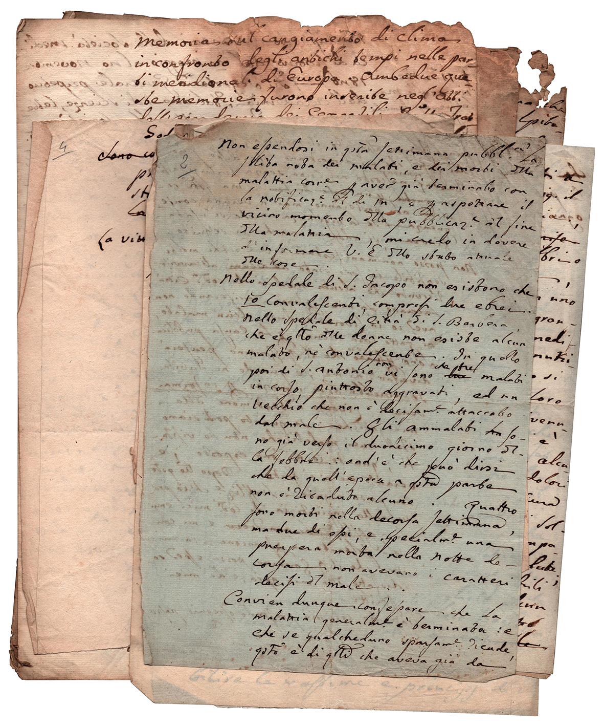 Il lotto include: la biografia di Gaetano Palloni scritta "da lui medesimo", apparentemente inedita, quattro pagine, datata '27 settembre 1827', documento fondamentale poiché, posta alla fine della vita, la ripercorre pressoché integralmente; nove carte di diverso formato contenenti ricette mediche, pagine sul lavoro a Livorno ecc.. ; diagnosi e ricetta di cura per il Signor Collai o Cellai, tre pagine in 8; la fondamentale difesa sul proprio operato contro le calunnie dei colleghi, due pagine in 8.