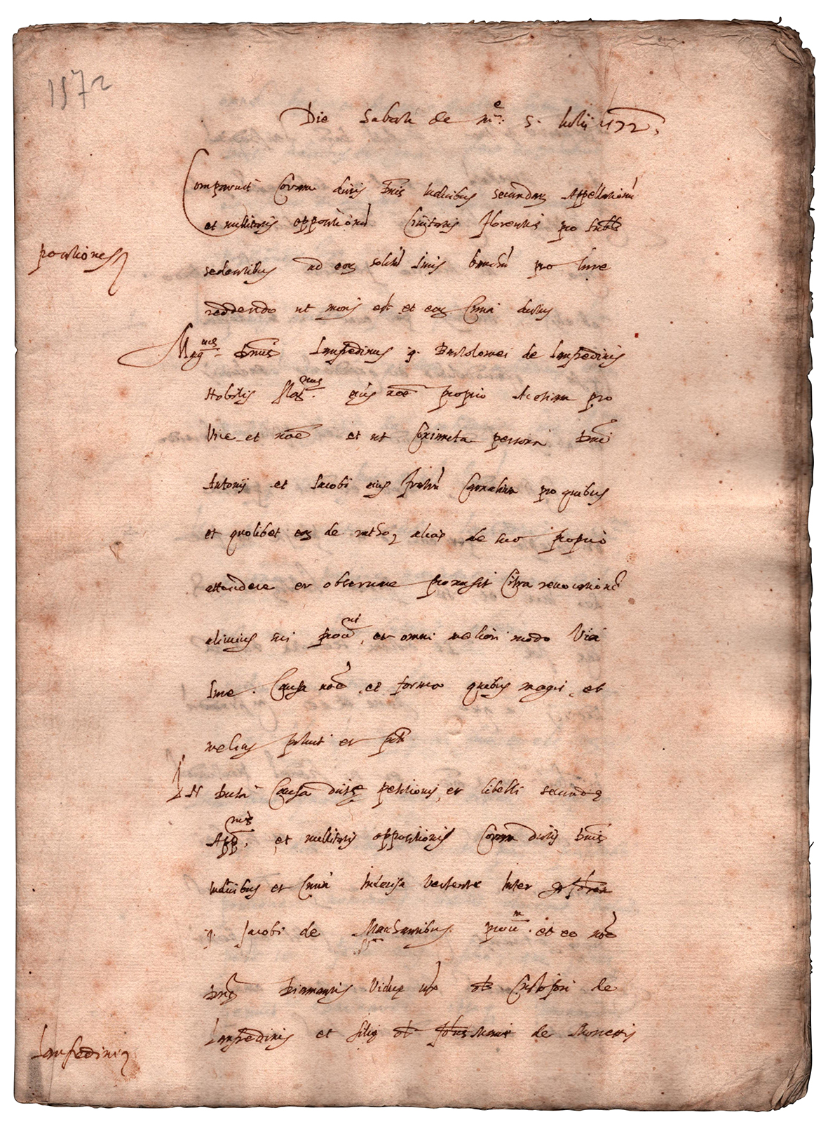 A questi atti segue appunto la copia della supplica - accolta - inviata il 4 luglio precedente da Lanfredino del fu Bartolomeo Lanfredini al «Serenissimo Principe» [Cosimo I de° Medici, Granduca di Toscana (+ 1574)] per essere ammesso «a fare certe posizioni e provare la parentela che era intra Cristoforo di Giovan Battista Lanfredini e Giovanni di Bernardo Lanfredini».