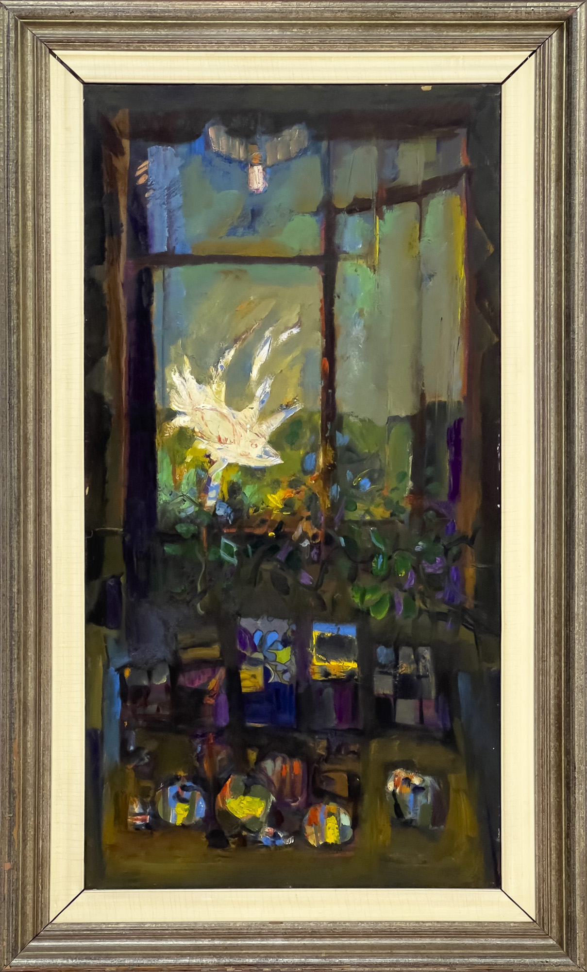 Aldo Borgonzoni Uccello Finestra – Oggetti, 1967-1968 olio su tela cm 120x50...
