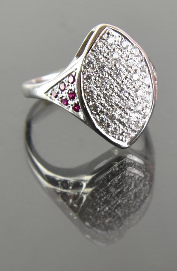 ANELLO IN ORO BIANCO E PIETRE SINTETICHE anello con al centro pave' in...