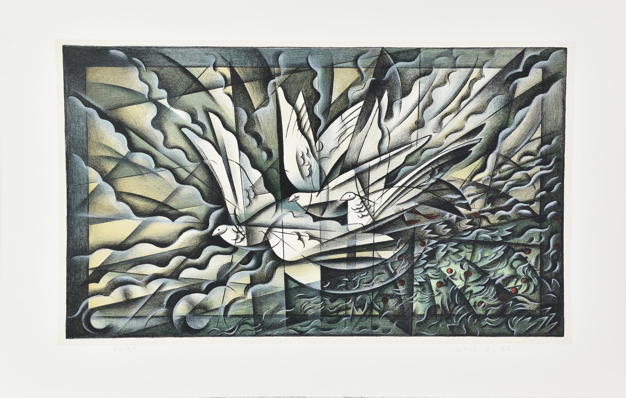 Floriano Bodini COLOMBE litografia, cm 50x70; es. 56/99 firma e tiratura