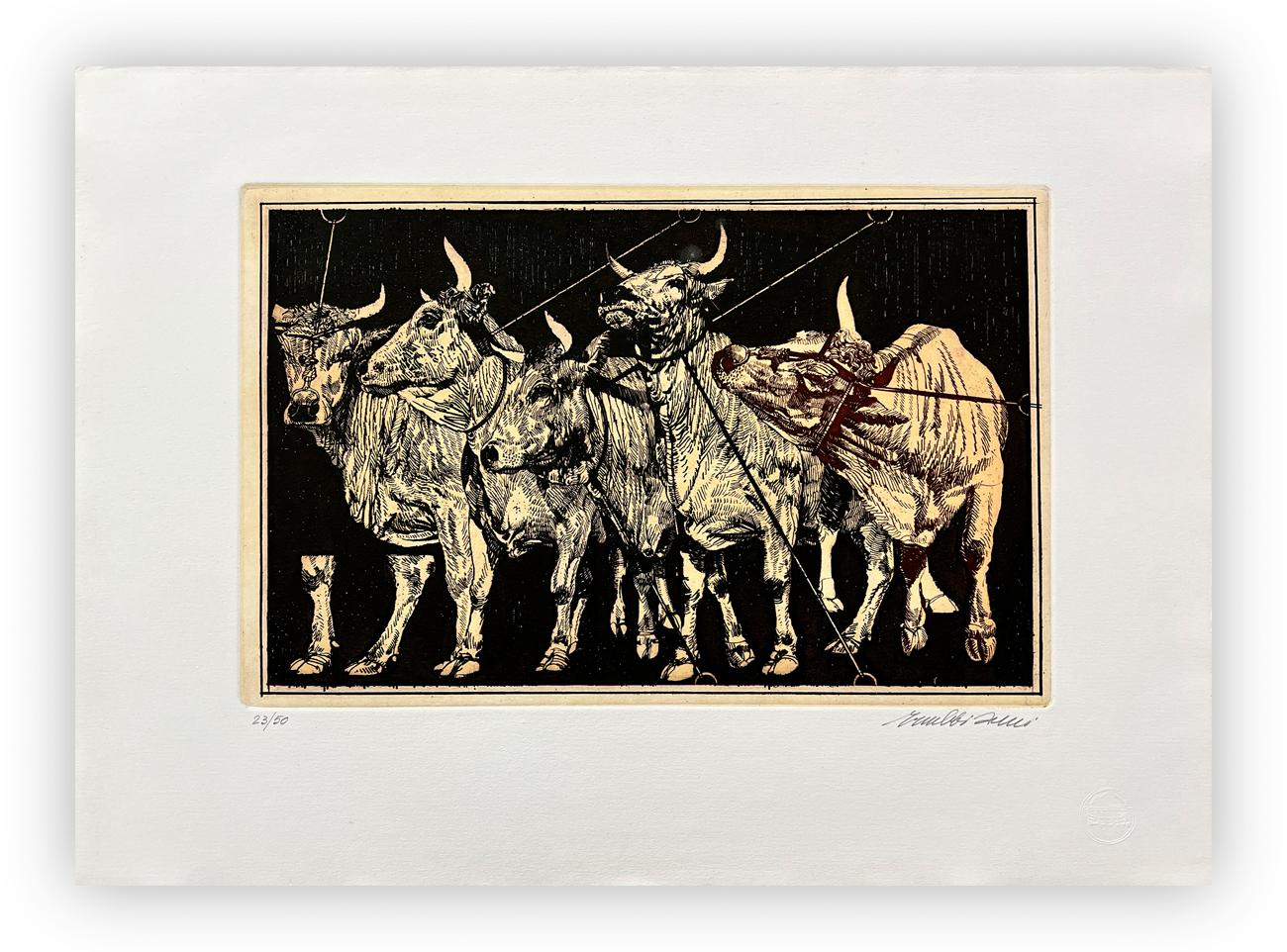 Firma e numerazione (Esemplare 23/50) a matita al fronte