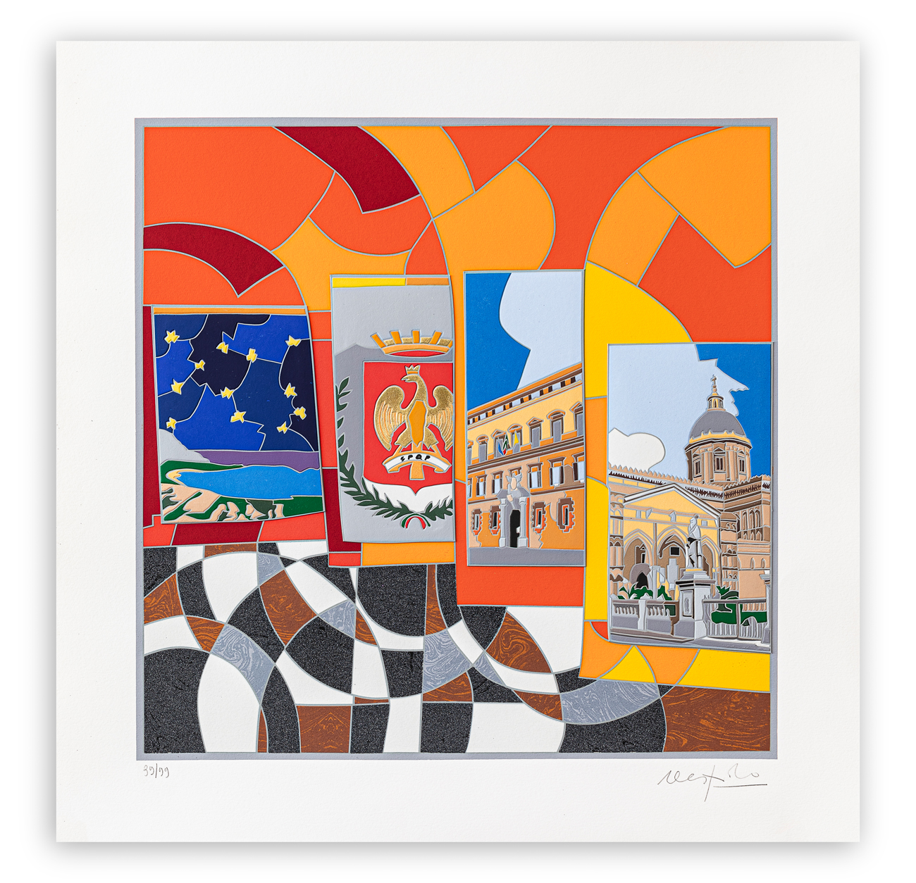 Firma e numerazione (Esemplare 39/99) a matita al fronte