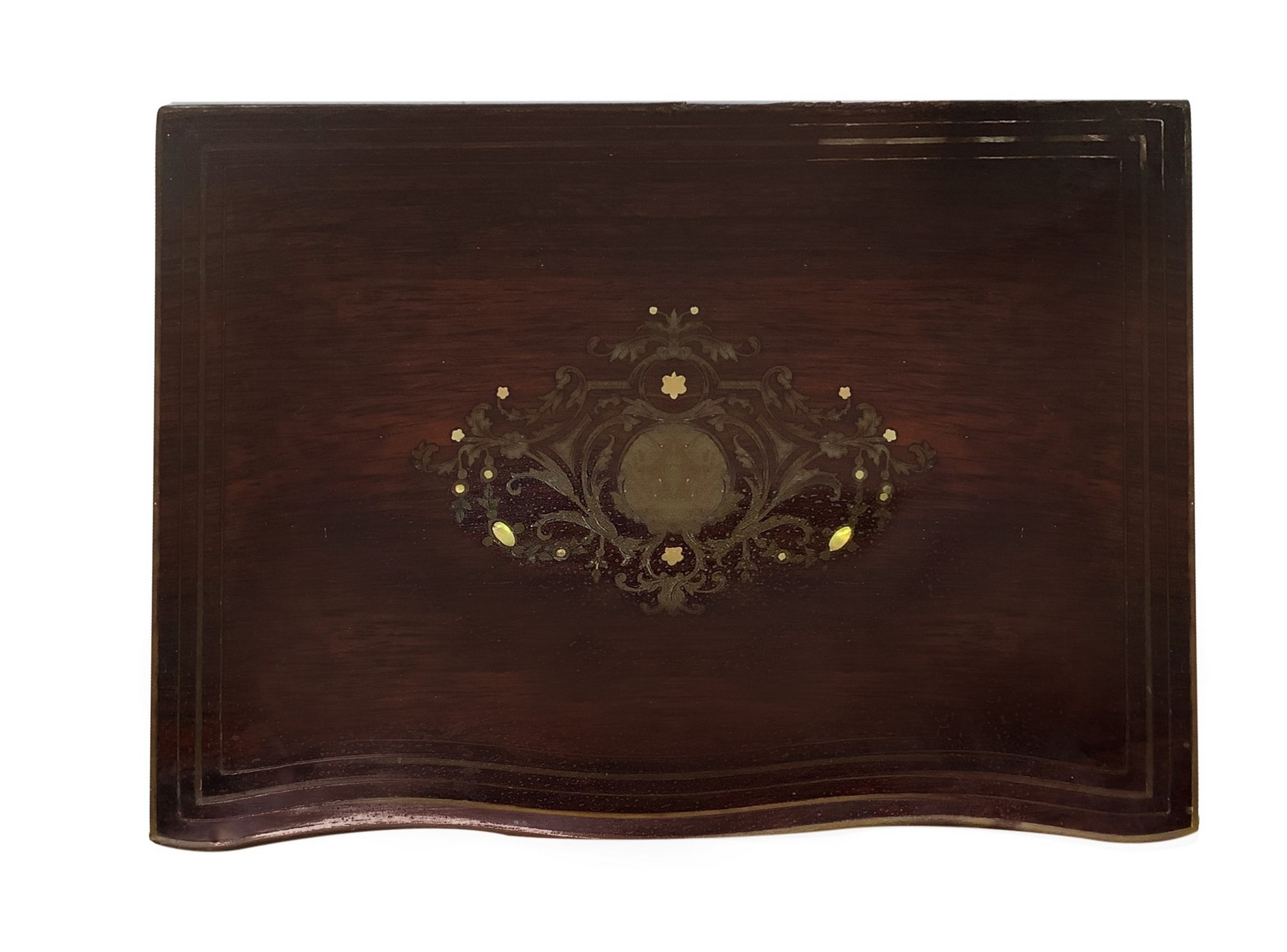 Completo per rosoli in mobiletto a cassetta in legno con intarsi, Napoleon III, sec. XIX