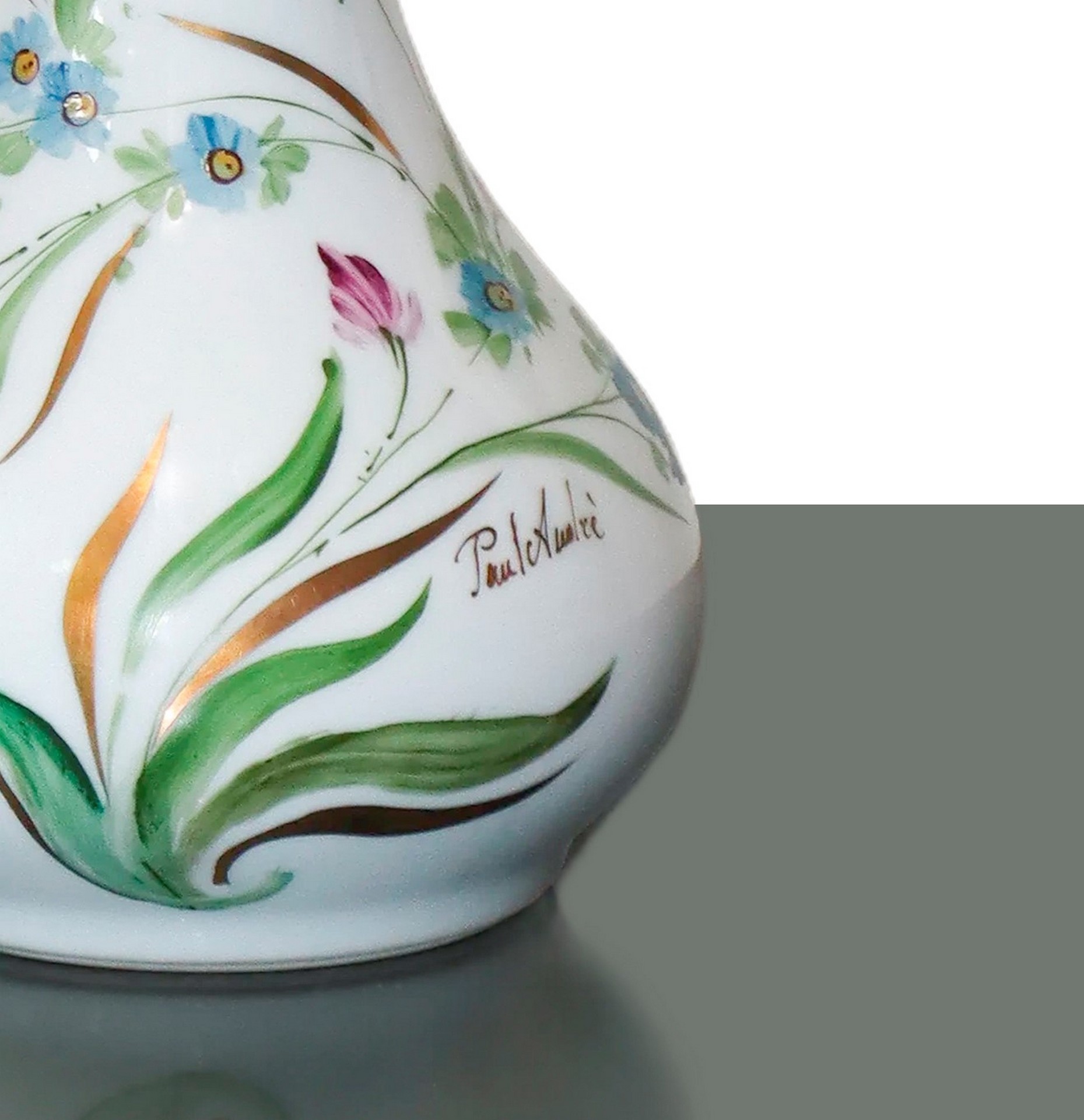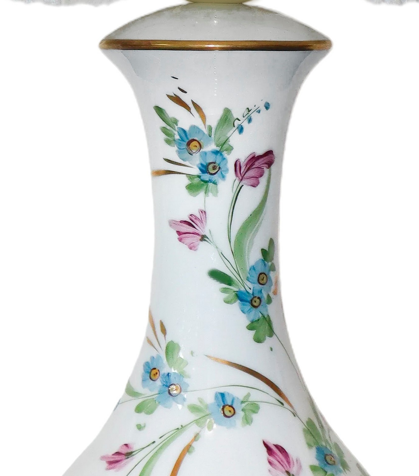 Lume vintage H cm 44 Firmato Rovaltier, base bianca, fiori policromi. Dipinti a mano da Paul AndrèFirmato Rovaltier, base bianca, fiori policromi. Dipinti a mano da Paul Andrè