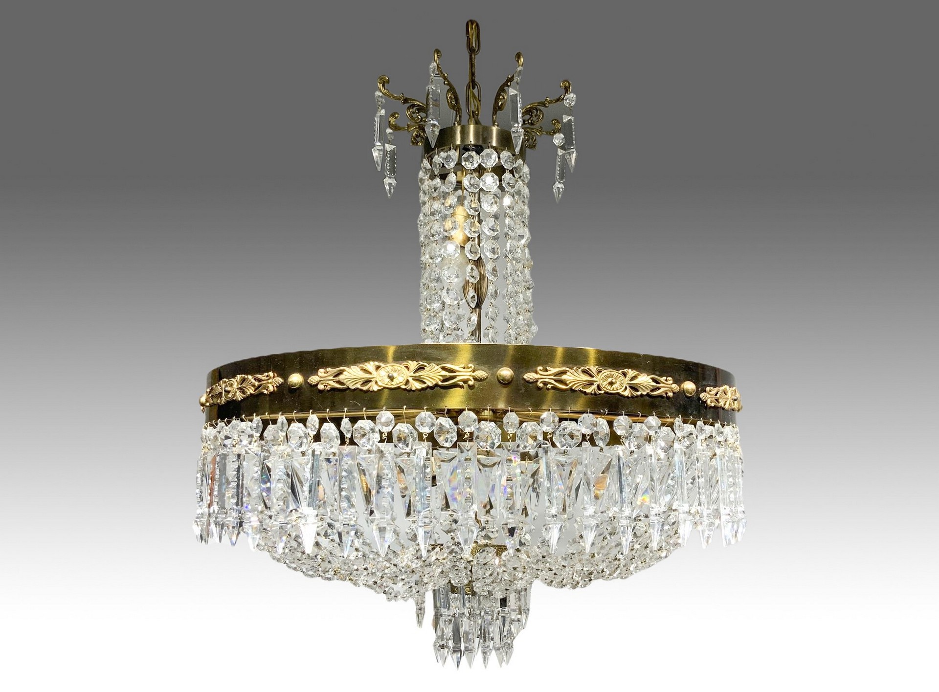 Lot 144 | Lampadario in metallo dorato e brindoli e due applique