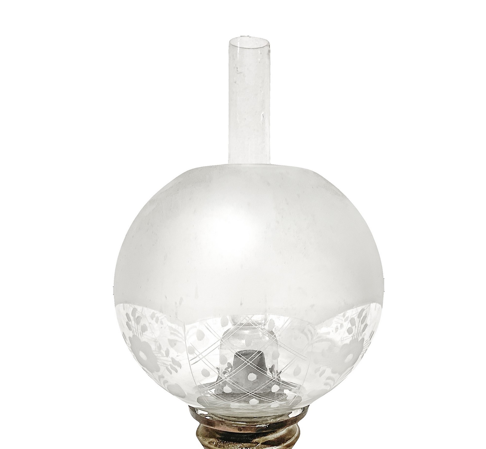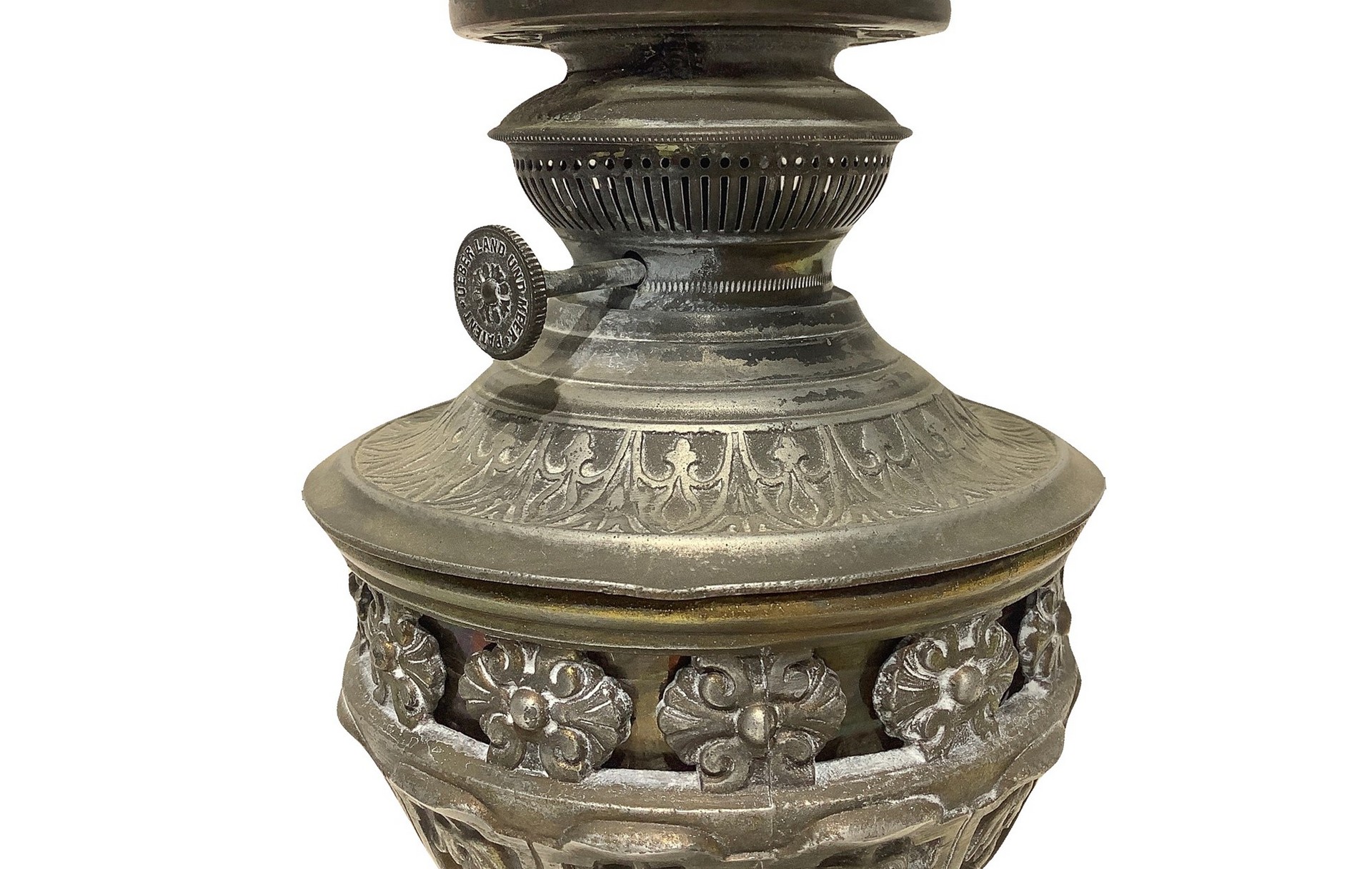 Lume con base di metallo, decorazione di foglie e fiori, fine 19th