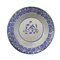 Piatto in maiolica dipinto a fiori azzurri su fondo bianco e ciotola con al centro casetta e nuvole azzurro su fondo bianco