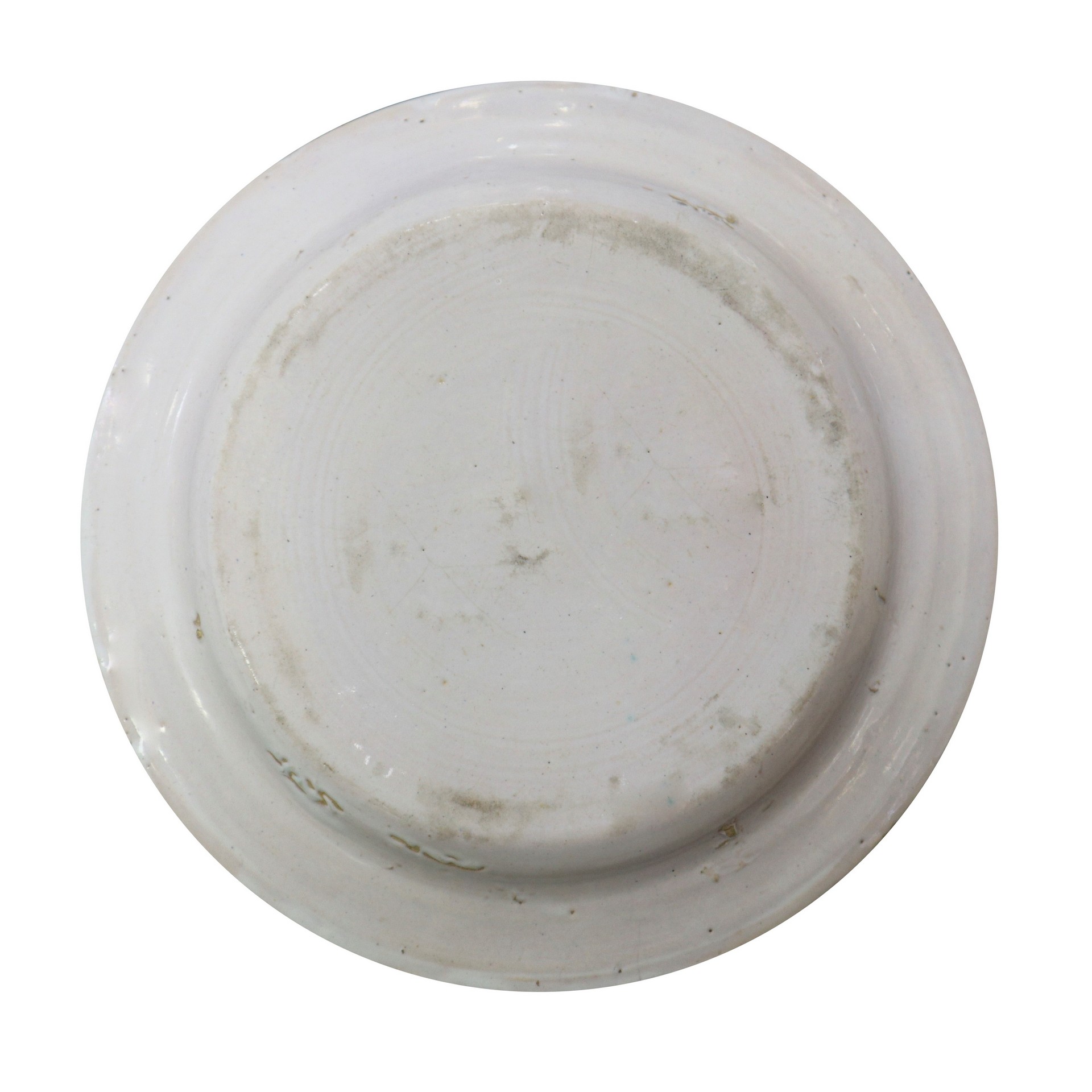 Piatto in maiolica di Caltagirone spugnato verde e azzurro a motivi floreali, fiore in manganese al centro, Mid 20th diametro cm 33 Filato.Filato.