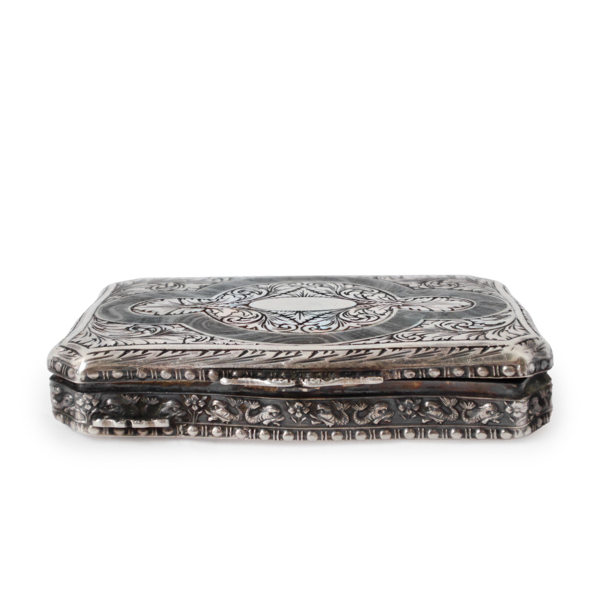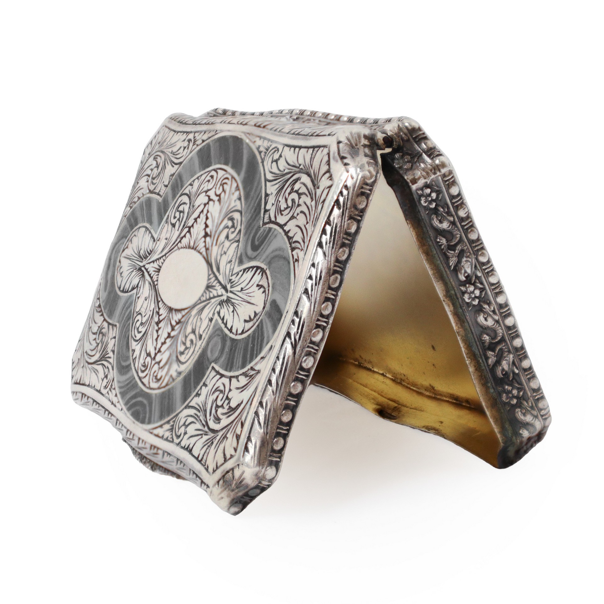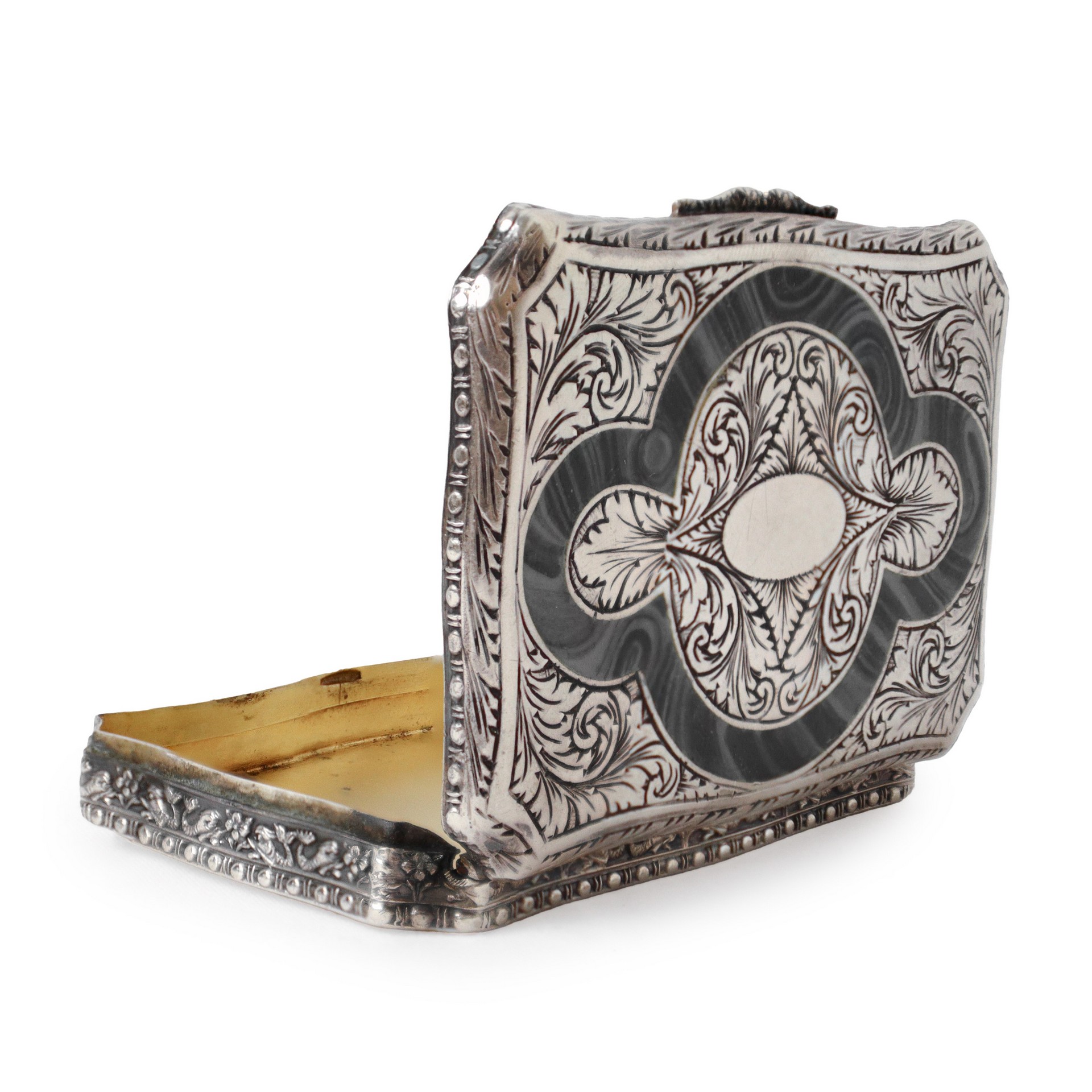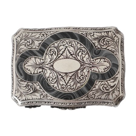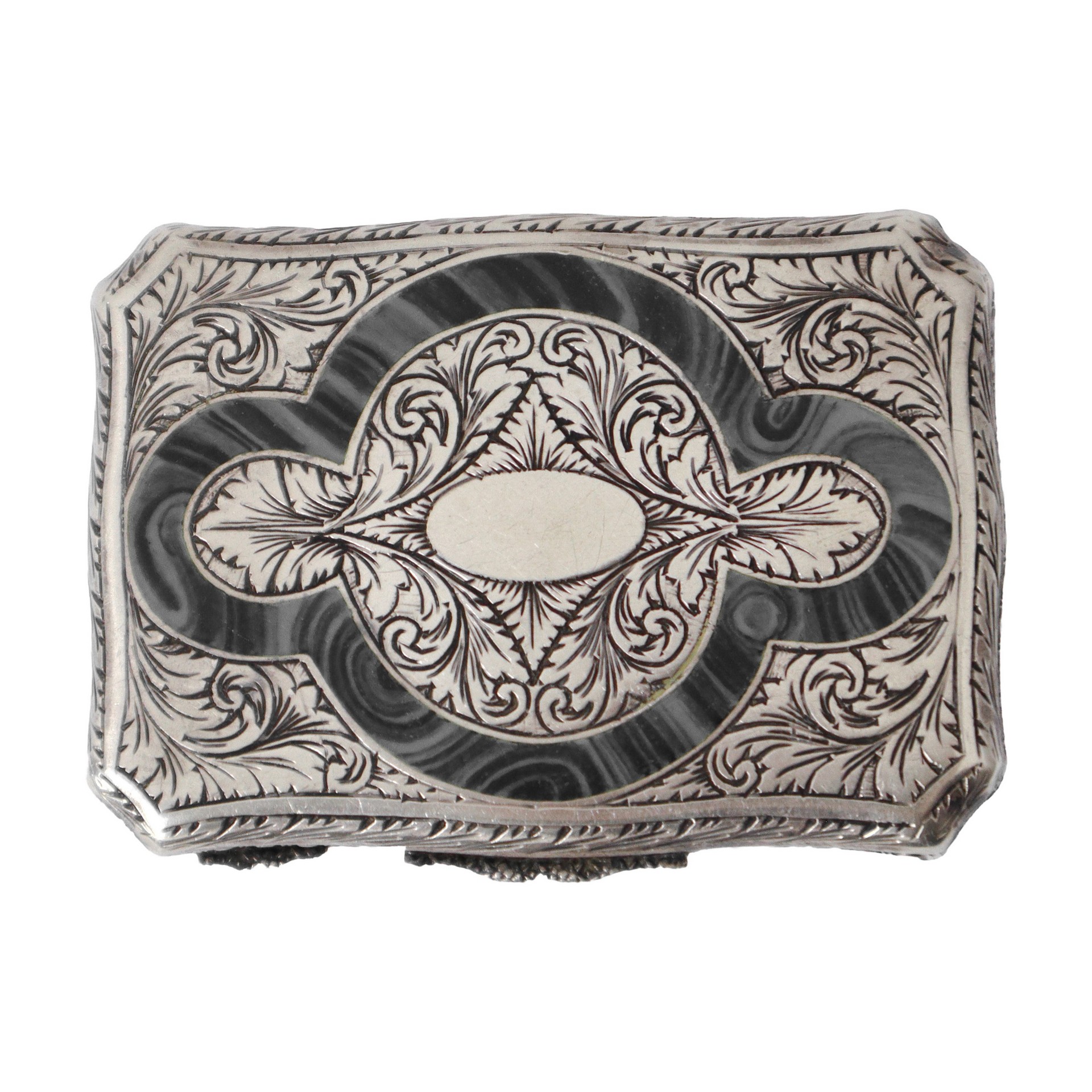 Portatabacco in argento bulinato e intarsiato con malachite cm 8x6
