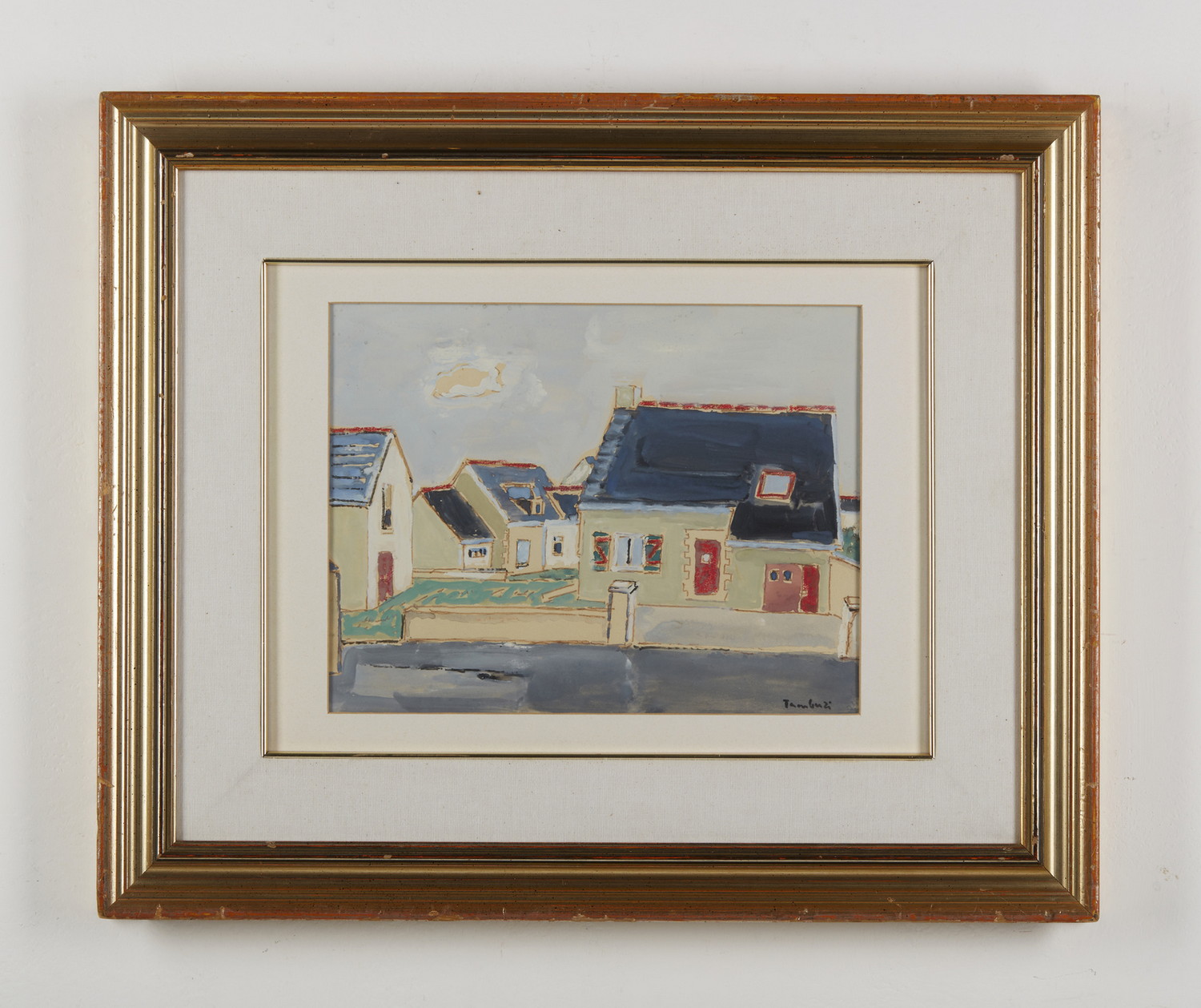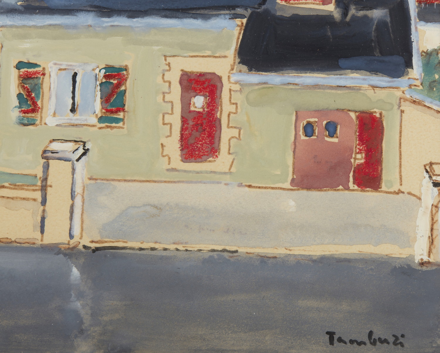 TAMBURI ORFEO (1910 - 1994) PAESAGGIO URBANO. Acquerelli su carta. Cm 30,00 x 23,00. firma. Cornice presente