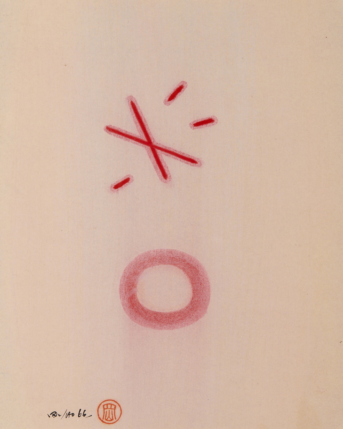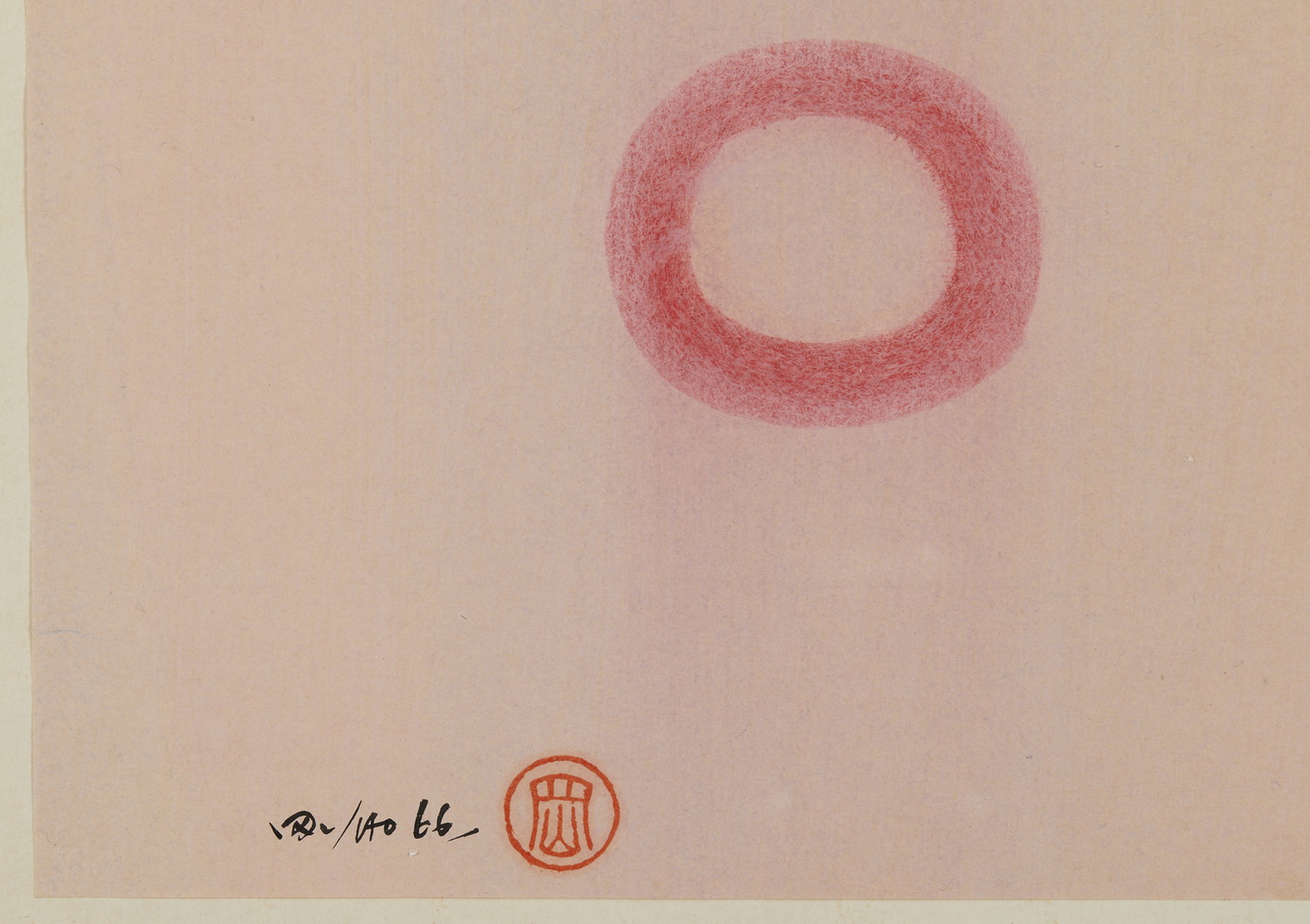 KAN OH (n. 1932) FIORISTA, 1966. Tecnica mista su carta. Cm 26,50 x 32,60. firma e data
