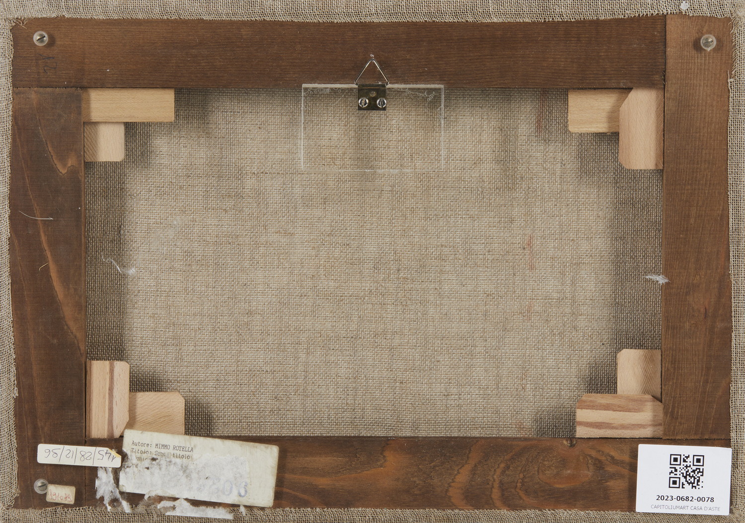 L'opera è corredata dall'archiviazione della Fondazione Mimmo Rotella, Milano. Entro teca in plexiglass.