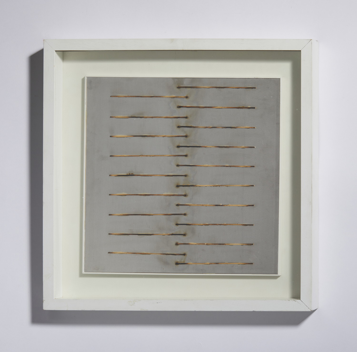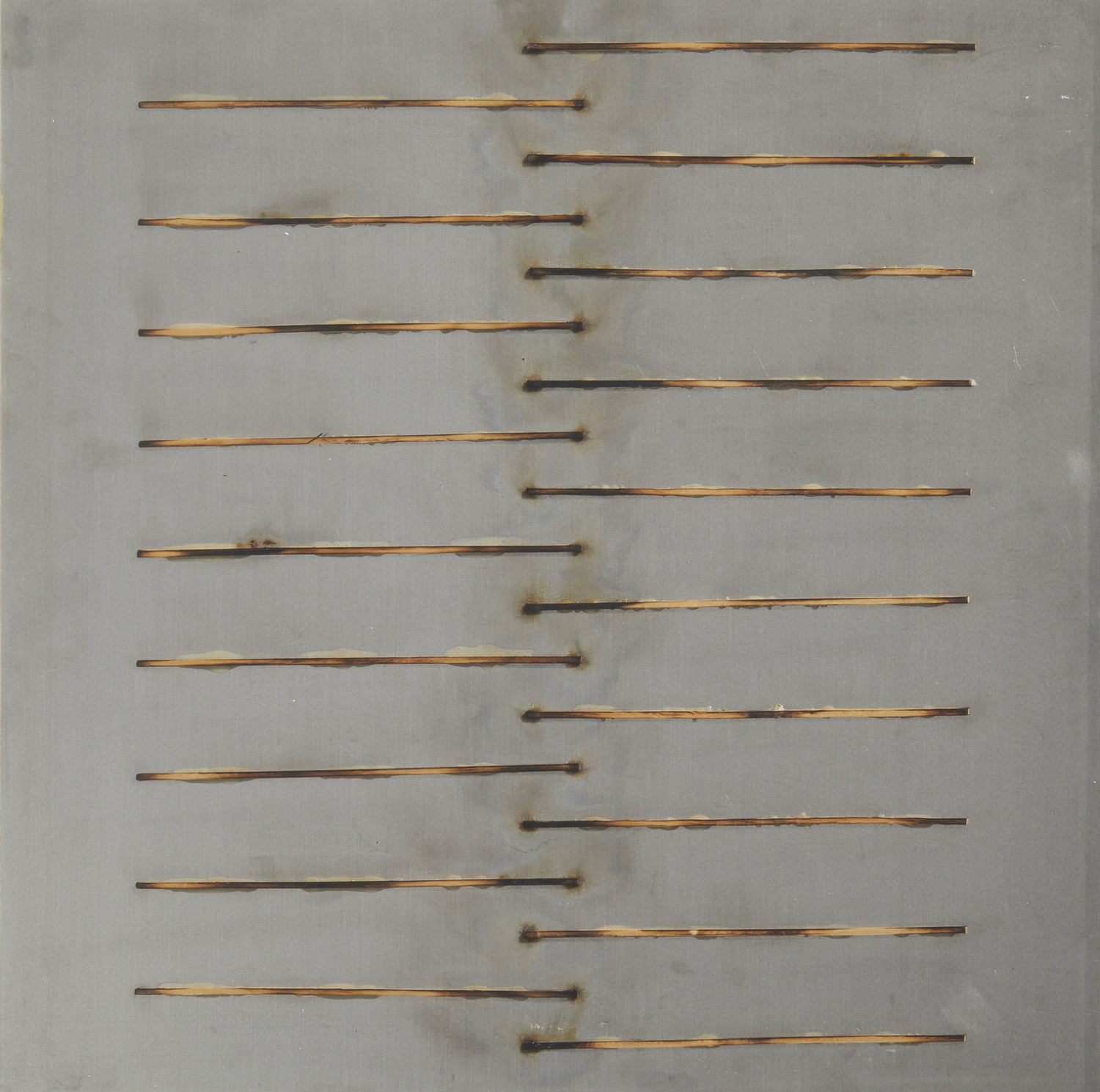 AUBERTIN BERNARD (1934 - 2015) DESSIN DE FEU, 2010. Fiammiferi bruciati su alluminio. Cm 48,00 x 48,00. sul retro: firma e data.