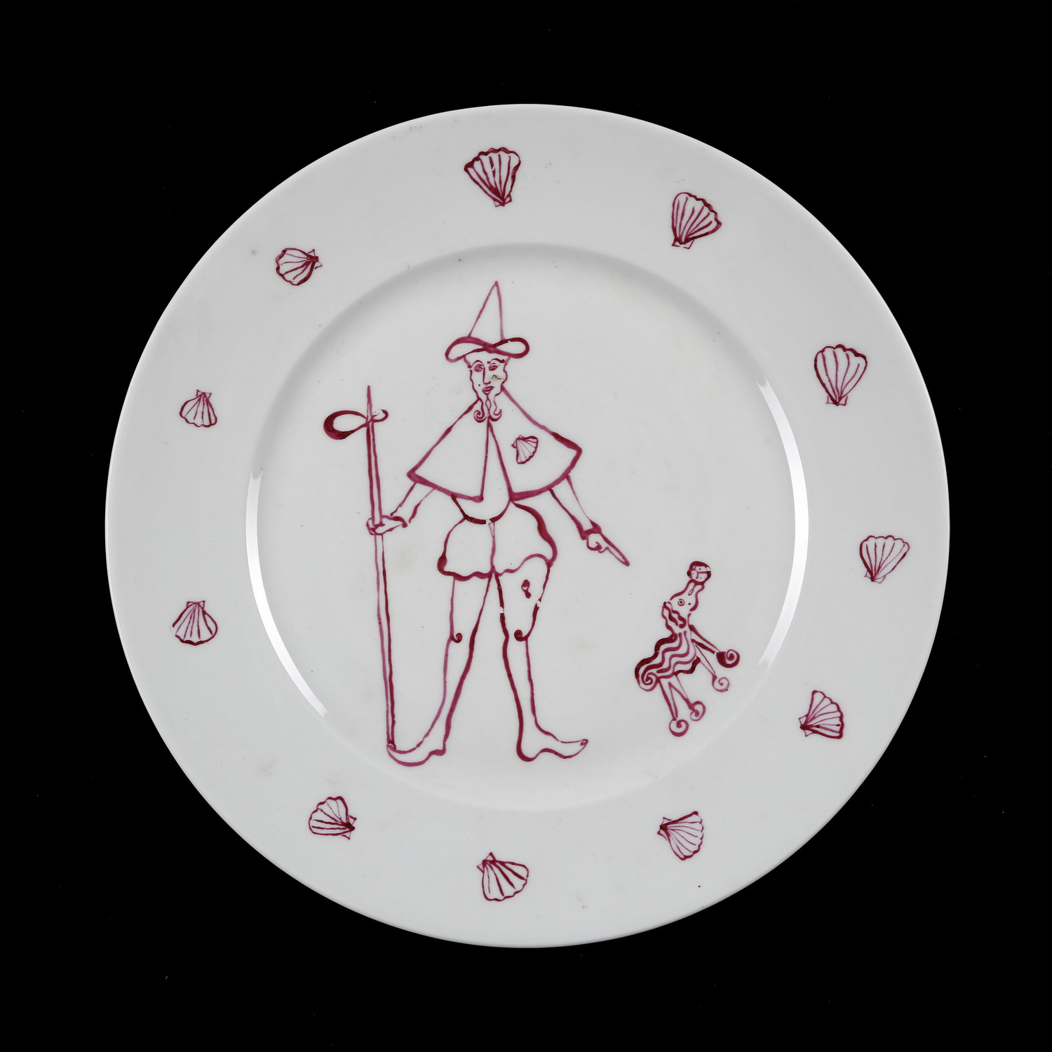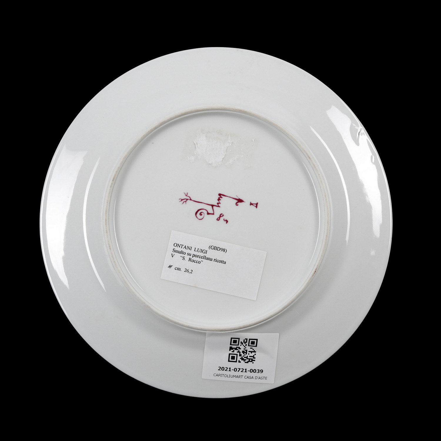 ONTANI LUIGI (n. 1943) SAN ROCCO, 1985. Piatto in ceramica. Cm 26,00 x 26,00. sul retro firma e data