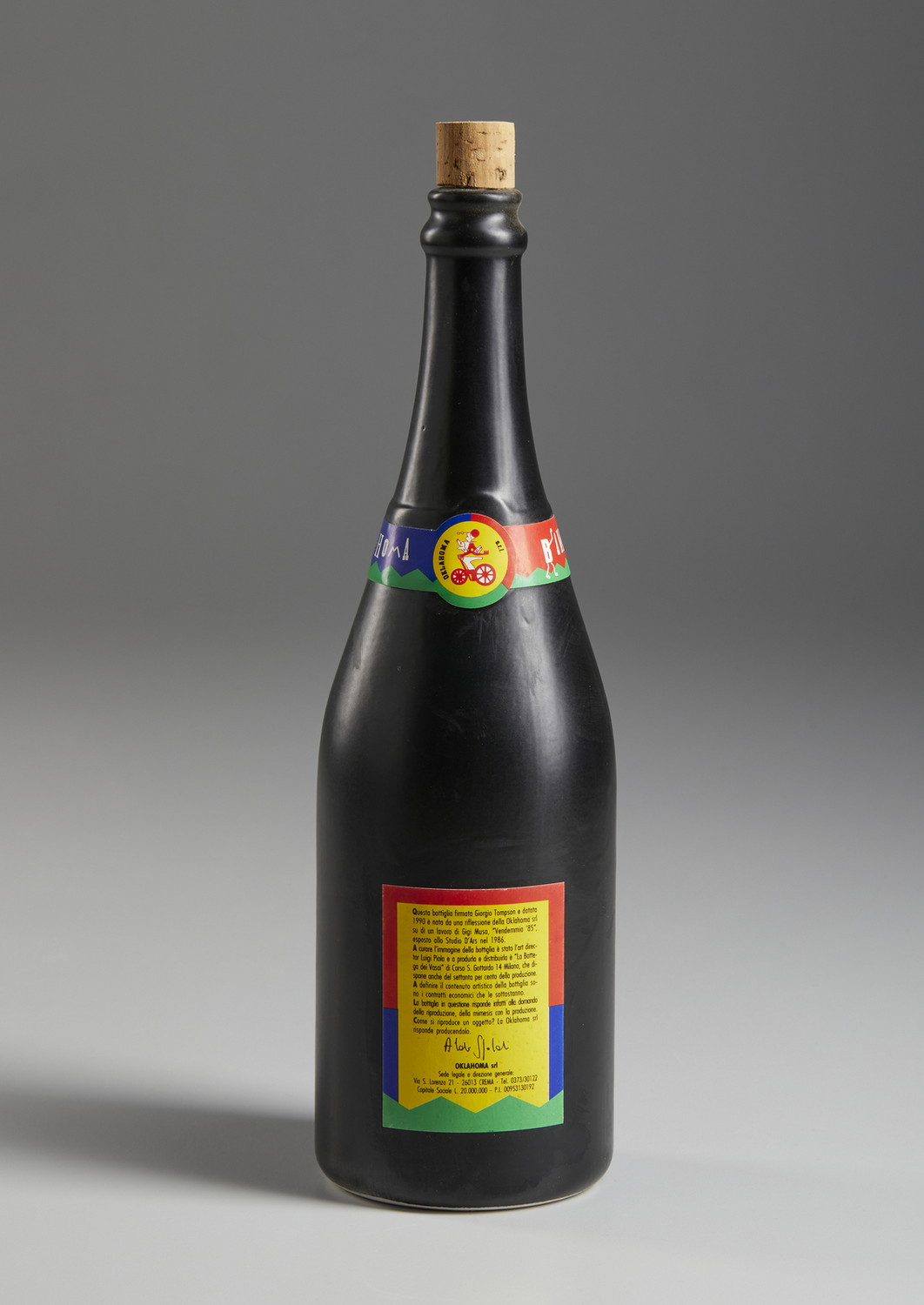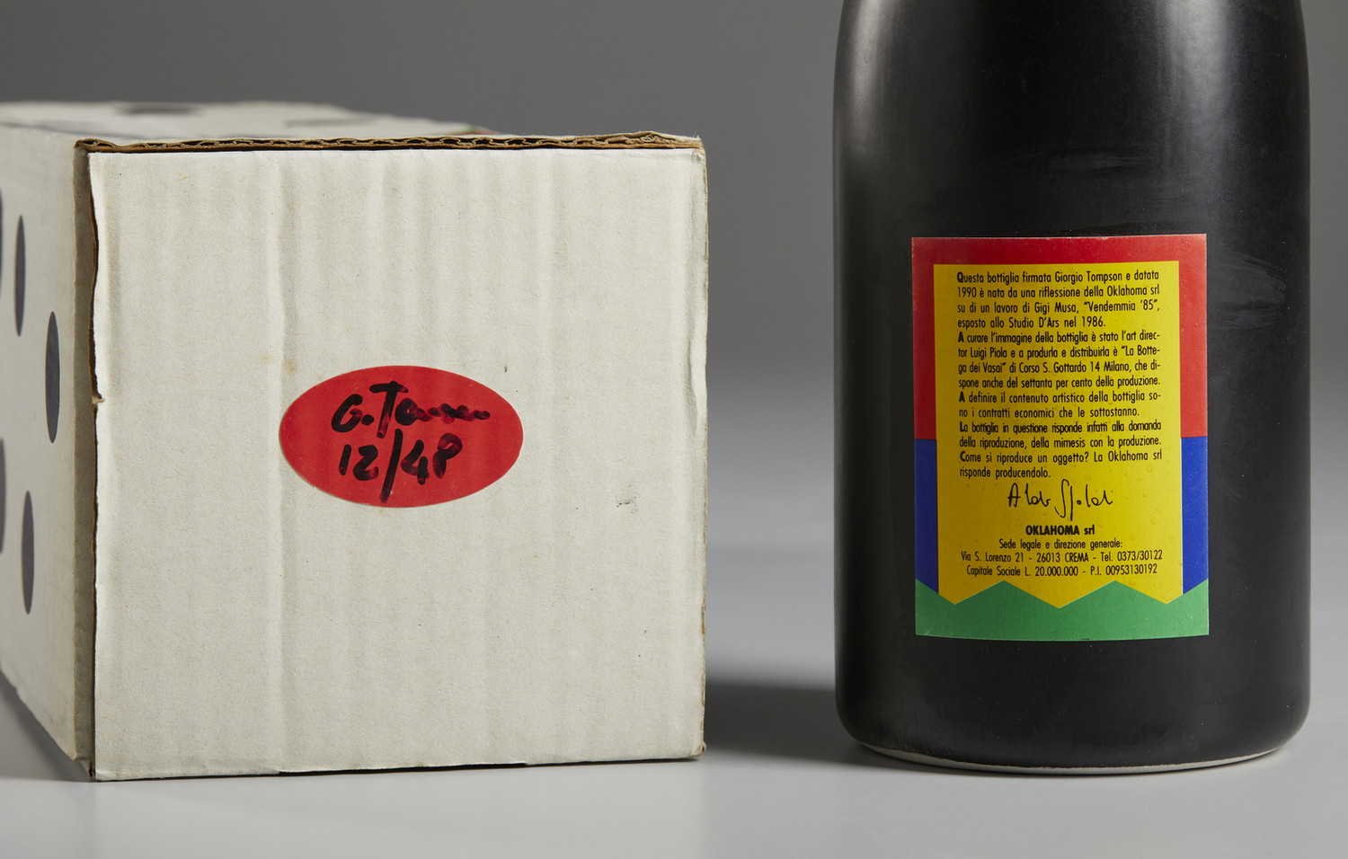 La bottiglia, firmata Giorgio Tompson, è una riflessione della Oklahoma srl sull'opera "Vendemmia '85" di Gigi Musa. Prodotta e distribuita da La Bottega dei Vasai, Milano.