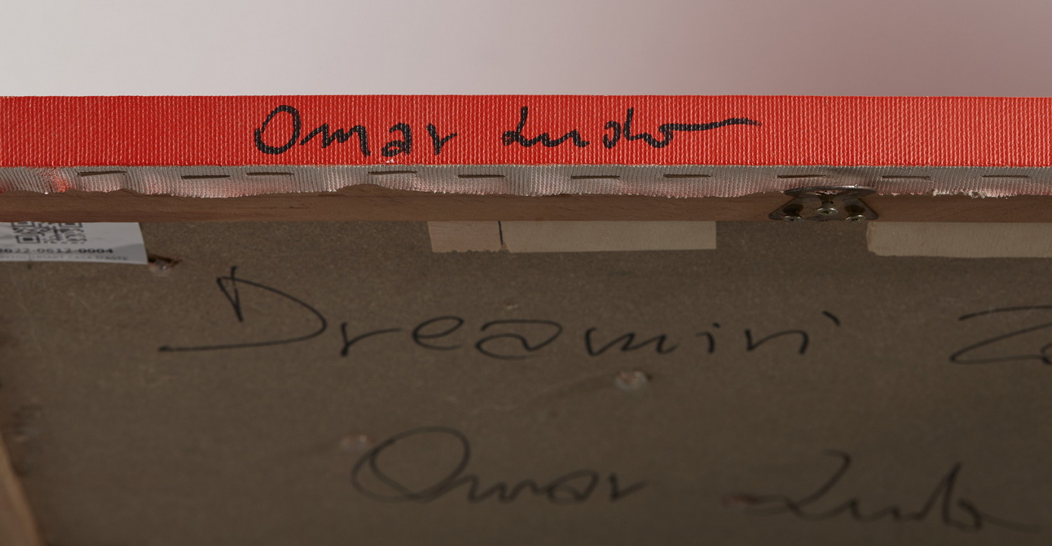 OMAR LUDO (n. 1953) DREAMIN', 2016. Acrilico su tela estroflessa. Cm 58,00 x 77,50 x 7,00. firma.