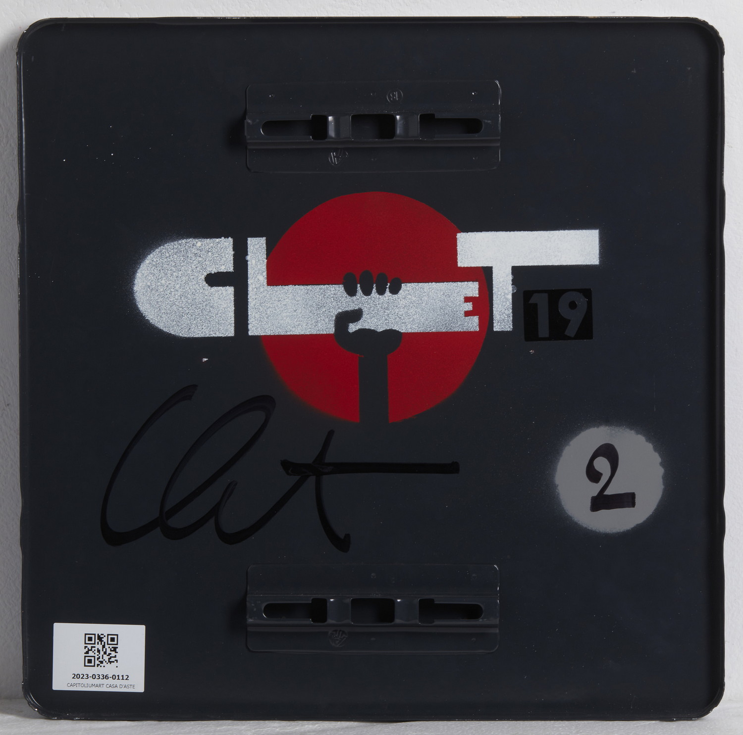 CLET ABRAHAM (n. 1966) P FOR... N.2, 2019. Cartello stradale e stickers. Cm 40,00 x 40,00. firma.