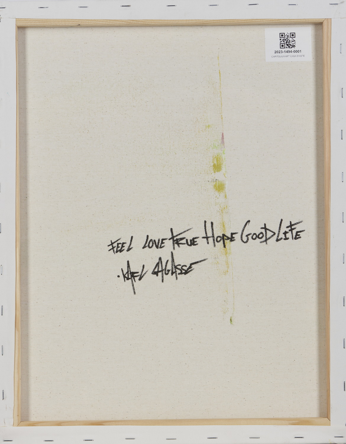 LAGASSE KARL (n. 1981) FEEL LOVE, TRUE HOPE, GOOD LIFE, 2023. acrilico su tela. Cm 40,00 x 50,00. 1/1. sul retro: titolo e firma.