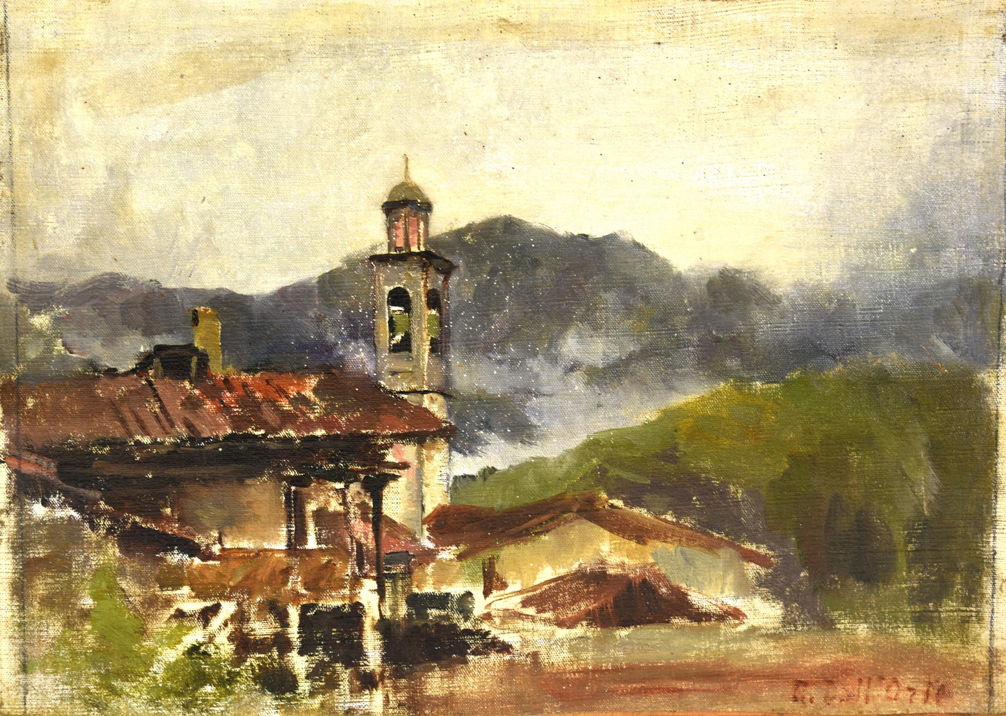 Umberto Dell'Orto PAESAGGIO olio su tela applicata su tavola, cm 22x32 firma...