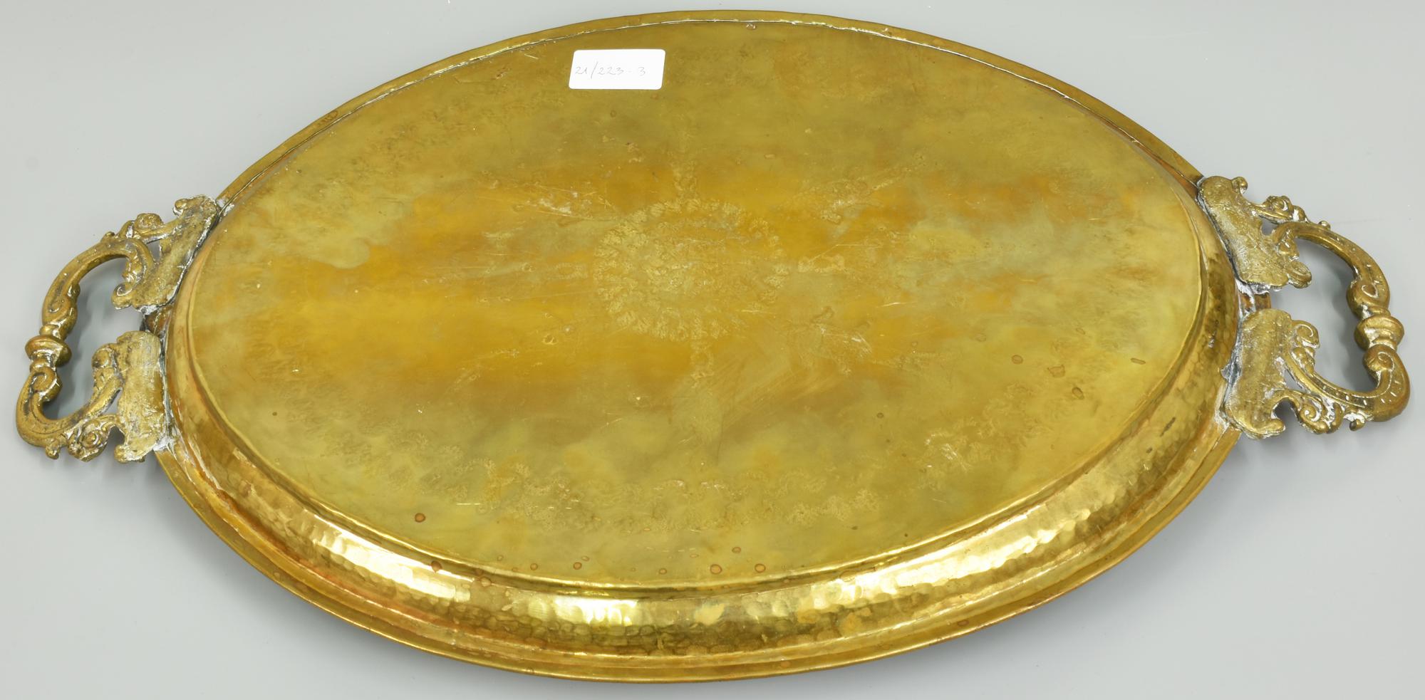 VASSOIO in ottone decorato a mano con motivi ittici h 33 cm, lunghezza 52 cm...