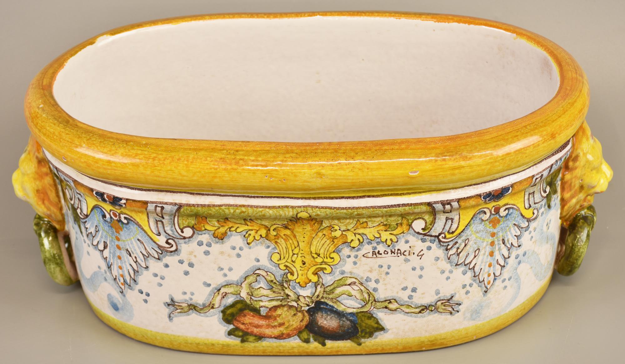 A firma Calonaci VASO IN MAIOLICA decorato con motivi vegetali cm 16x37x20...