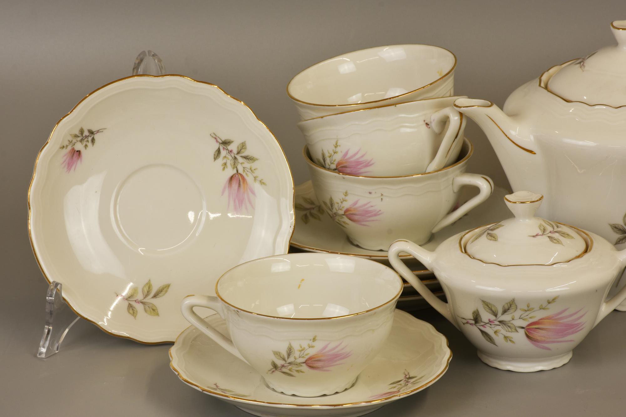 SERVIZIO DA THE DURKEN in porcellana decorata a motivi floreali, composto da...
