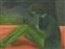 Anonimo DONNA VERDE SU FONDO ROSSO olio su masonite, 60x80 cm al retro:...
