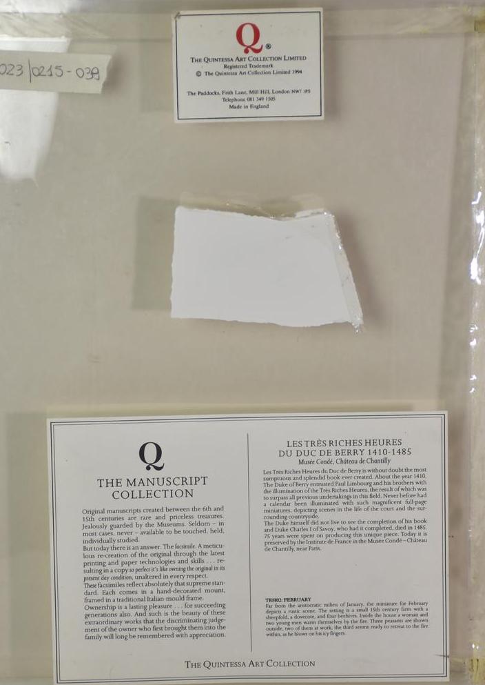 LES TRES RICHES HEURES DU DUC DE BERRY: FEBRUARY riproduzione su carta del...