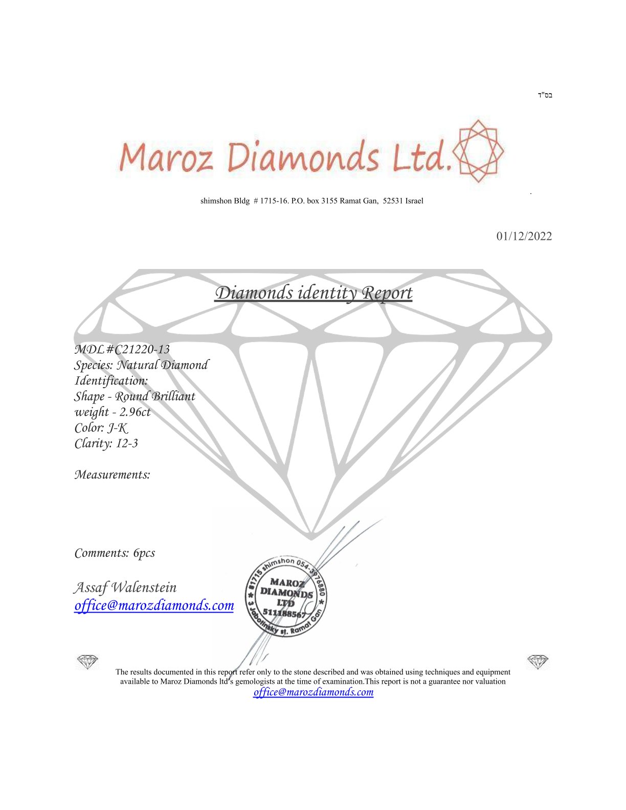 Lot 4 | 6 DIAMANTI 2,96 CT J-K - I2-3 - C21220-13
