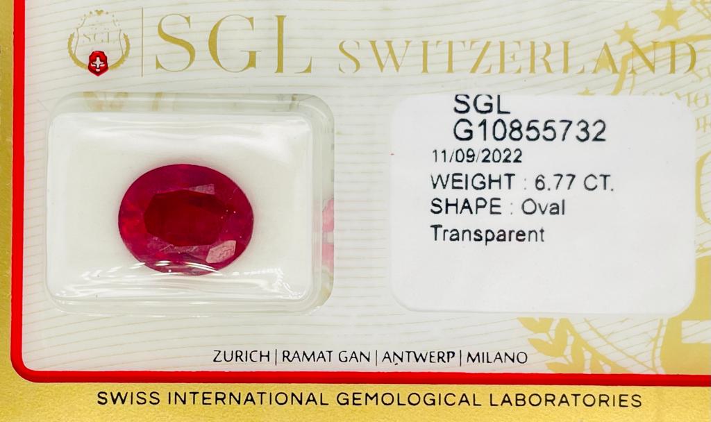 RUBINO LAB GROWN 6,77 CARATI - TAGLIO OVALE - CERTIFICATO SGL - PR80505A