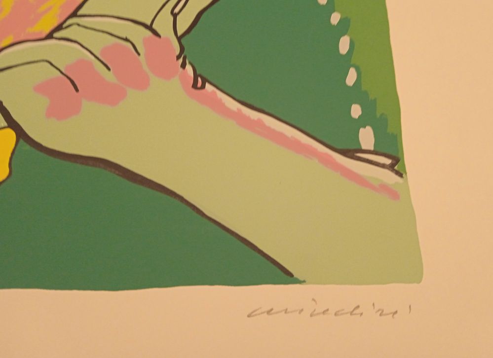 REMO BRINDISI (Roma 1918 - Lido di Spina 1996) "Senza titolo". Serigrafia a colori su carta. Cm 90x65. Opera firmata in basso a destra Brindisi. Reca numeri di tiratura in basso a sinistra 14/100.