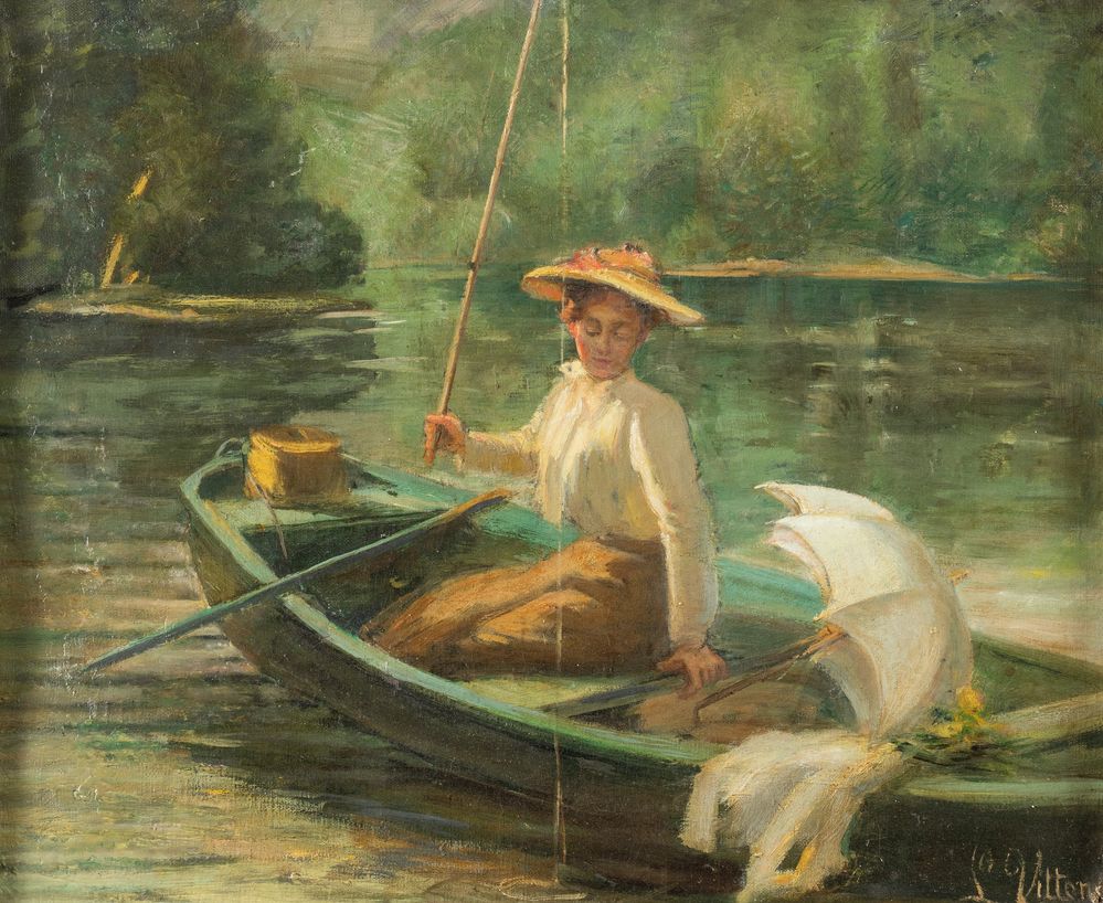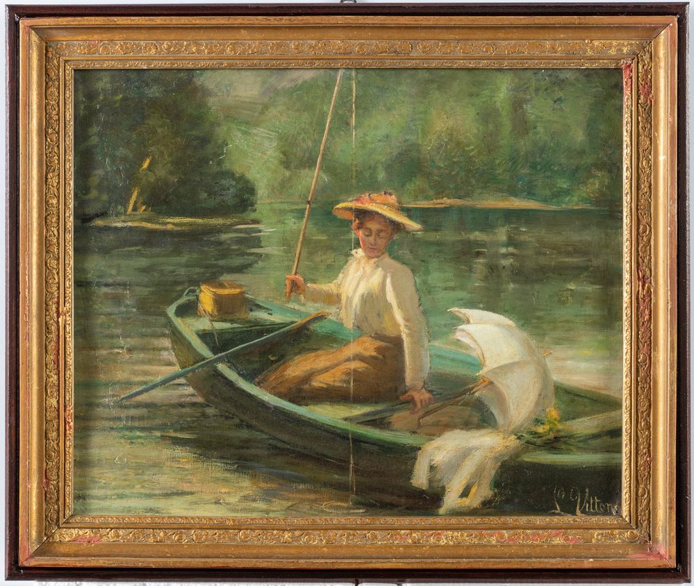 Lot 75 | L. VITTON (inizio del XX secolo) "Gita sul fiume". Olio su tela. Cm 38x46....