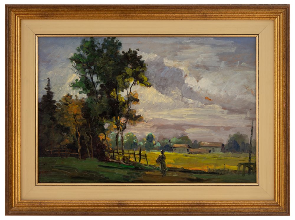 Angelo Malinverni Torino 1877 - 1947 Paesaggio con figura Olio su tavola cm 30,5x44 firmato in basso a dx
