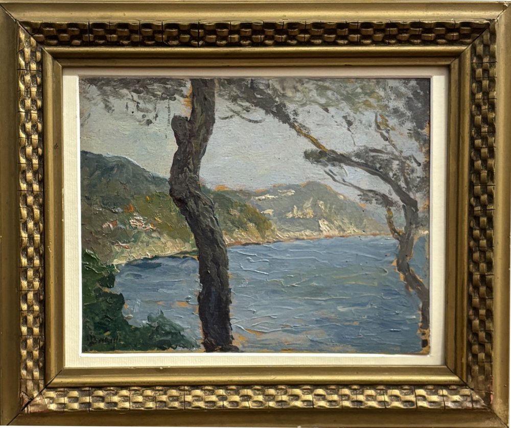 Latino Barilli Parma 1883 - 1961 Marina ligure olio su tavola cm 15x21,5 firmato in basso a sx
