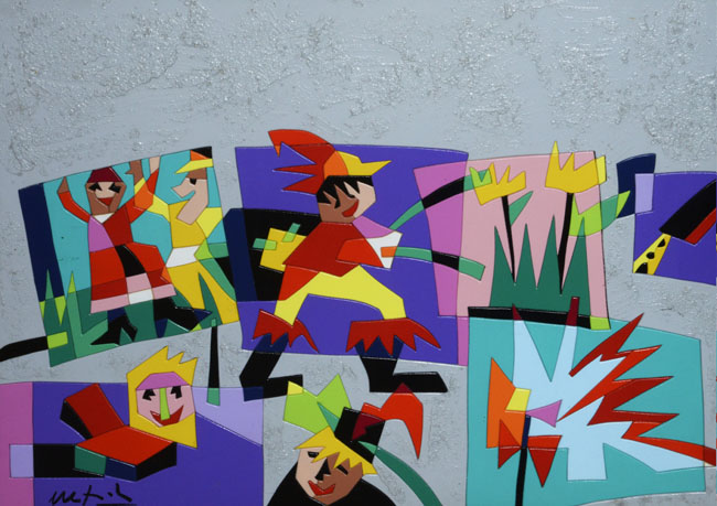 Ugo Nespolo FAIRY TALE, 1993 Acrilico su legno, cm. 48,5x68,5. Autentica su foto dell’Artista.