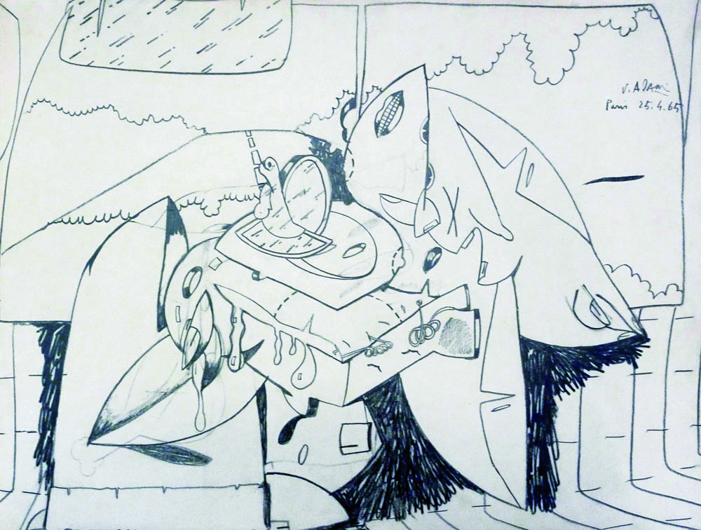 Firmato, datato. VALERIO ADAMI (1935) - Senza titolo, 1965, Carboncino su...