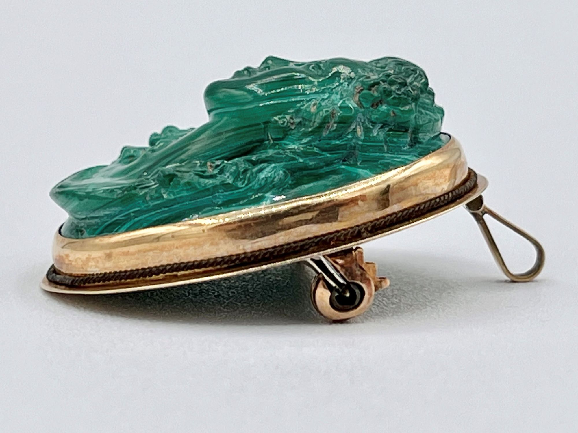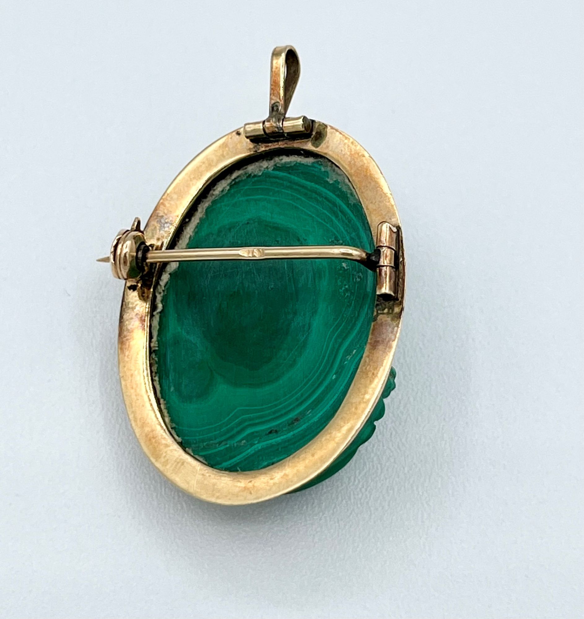 Lot 90 | Pendente - spilla oro con cammeo in malachite
