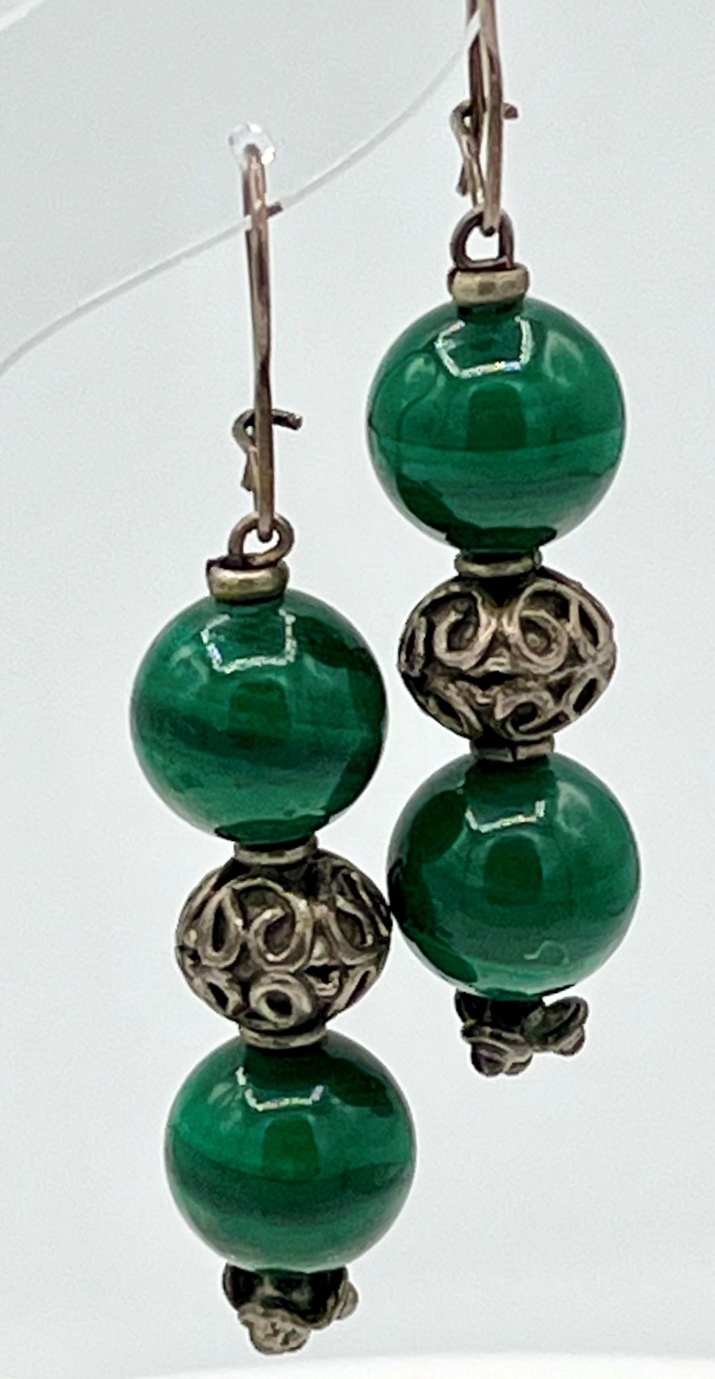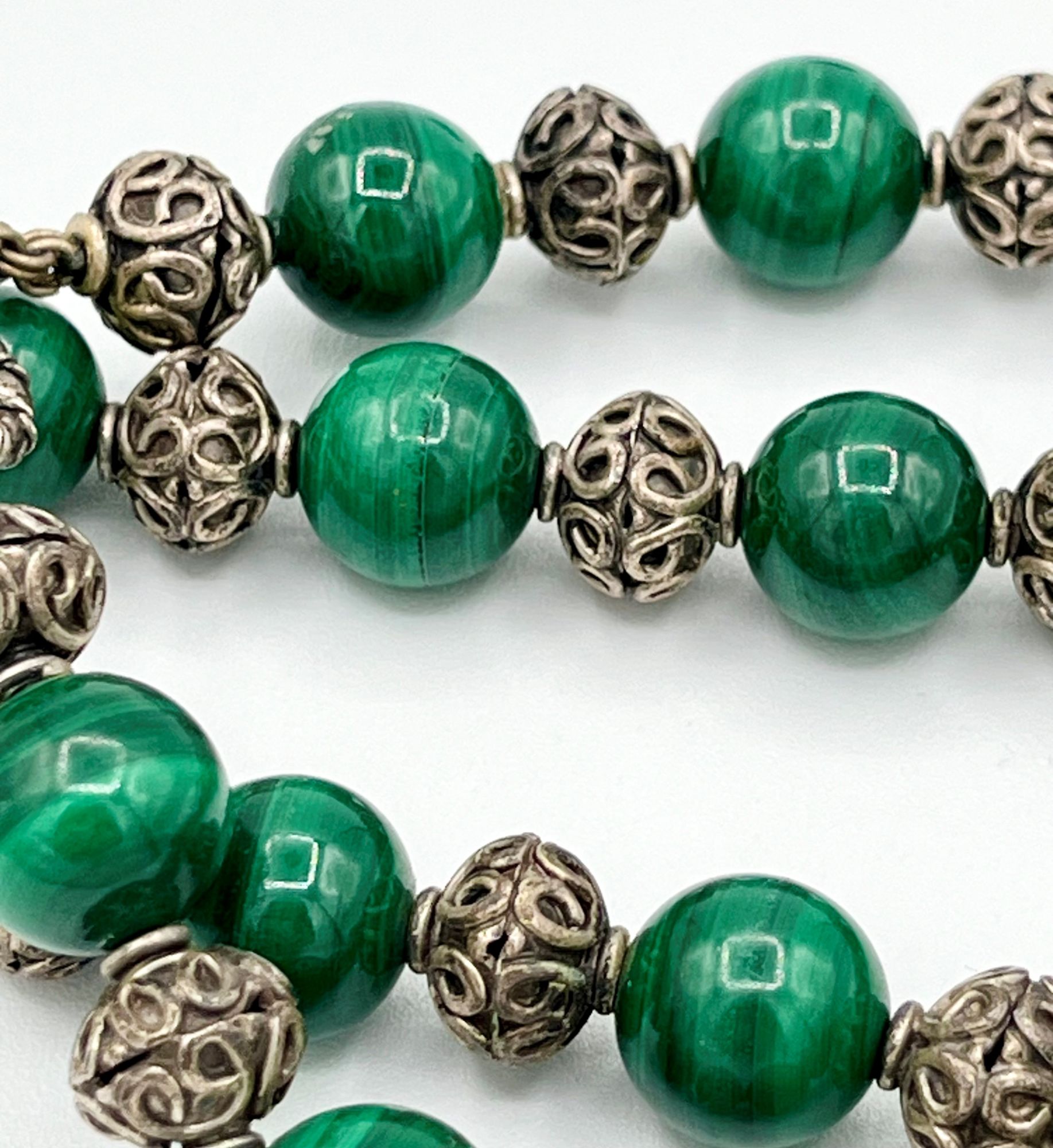 ad un filo di sfere di malachite separate da distanziali in argento.