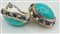 incastonati con cabochon di turchese tra cornice decorata con smalti.