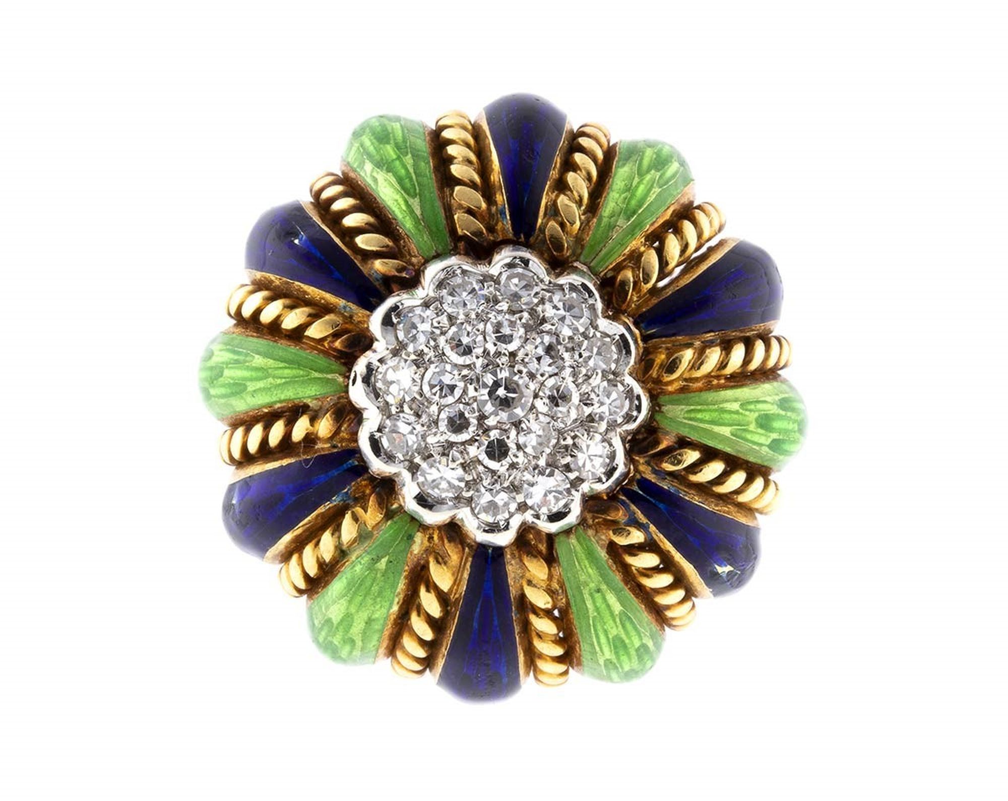Anello in oro, diamanti e smalti - USA, anni '50