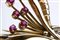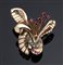 in oro 18k con rubini di sintesi, diamanti taglio huit-huit 0,15 ct, colore H, purezza VS.