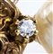 spilla in stile antico impreziosita da due diamanti e una perla scaramazza.